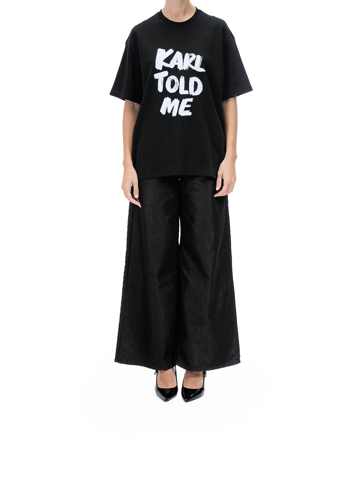 Karl told me T-shirt in nero. T-shirt oversize in cotone di karl lagerfeld in collaborazione con paris hilton, caratterizzata dalla stampa frontale