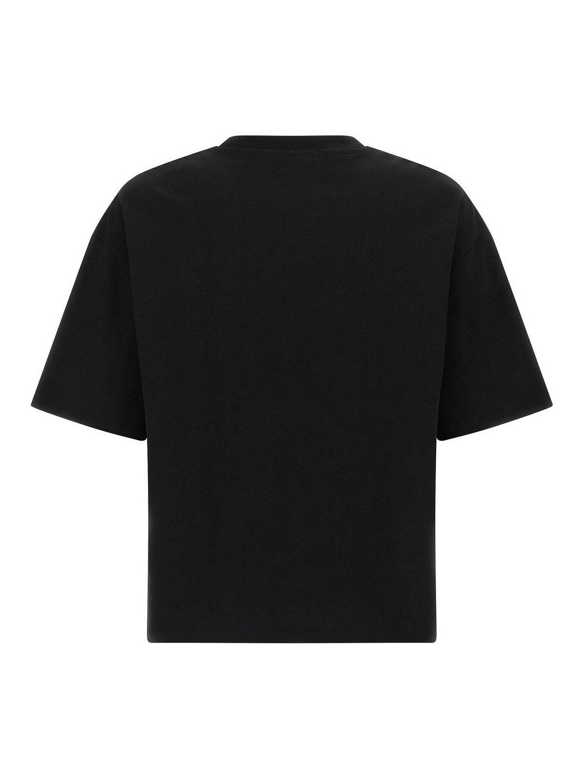 T-shirt 'ma drop' in cotone con ricamo logo frontale a contrasto, girocollo, maniche corte con spalla scesa, spacchetti laterali.