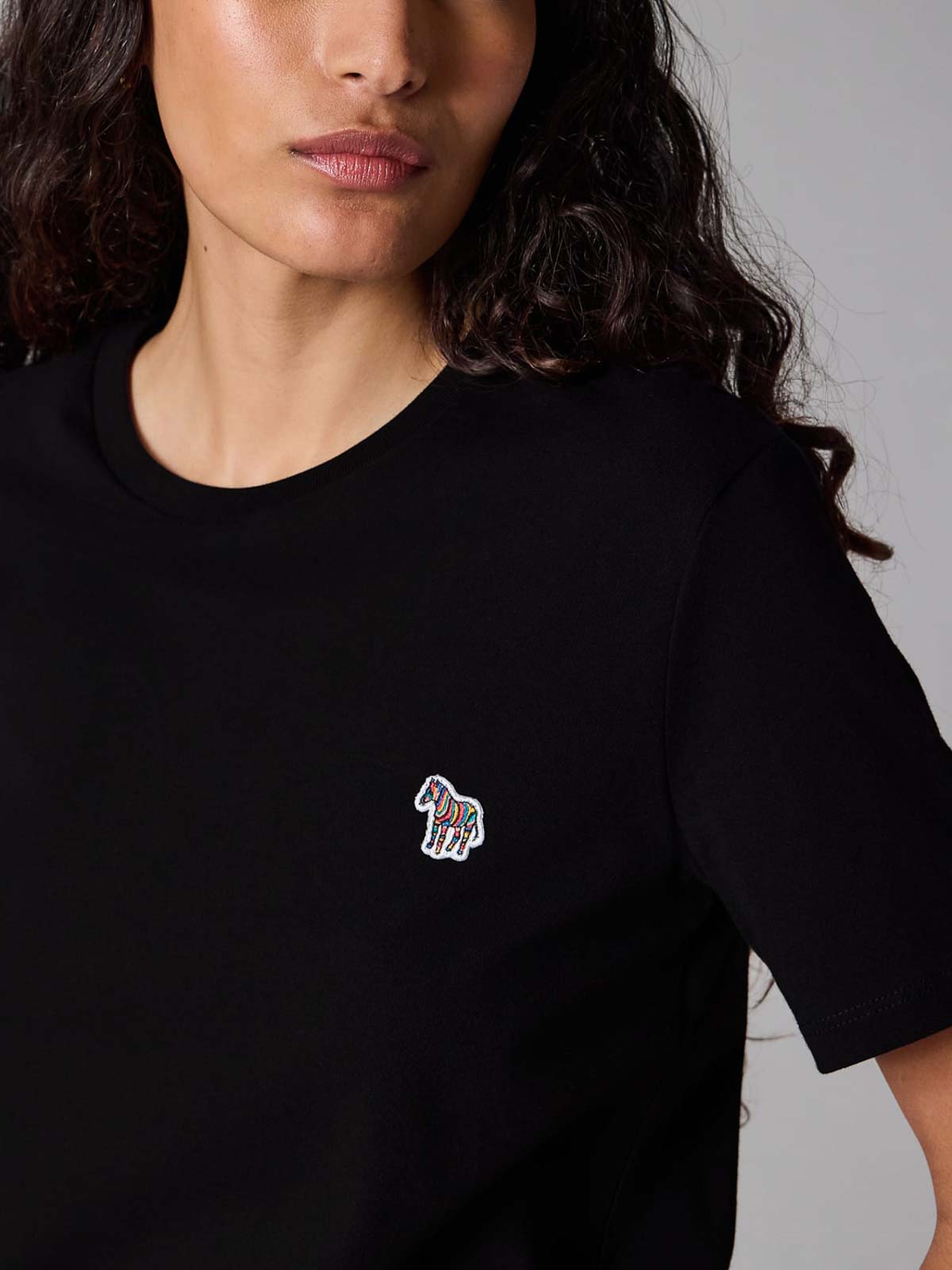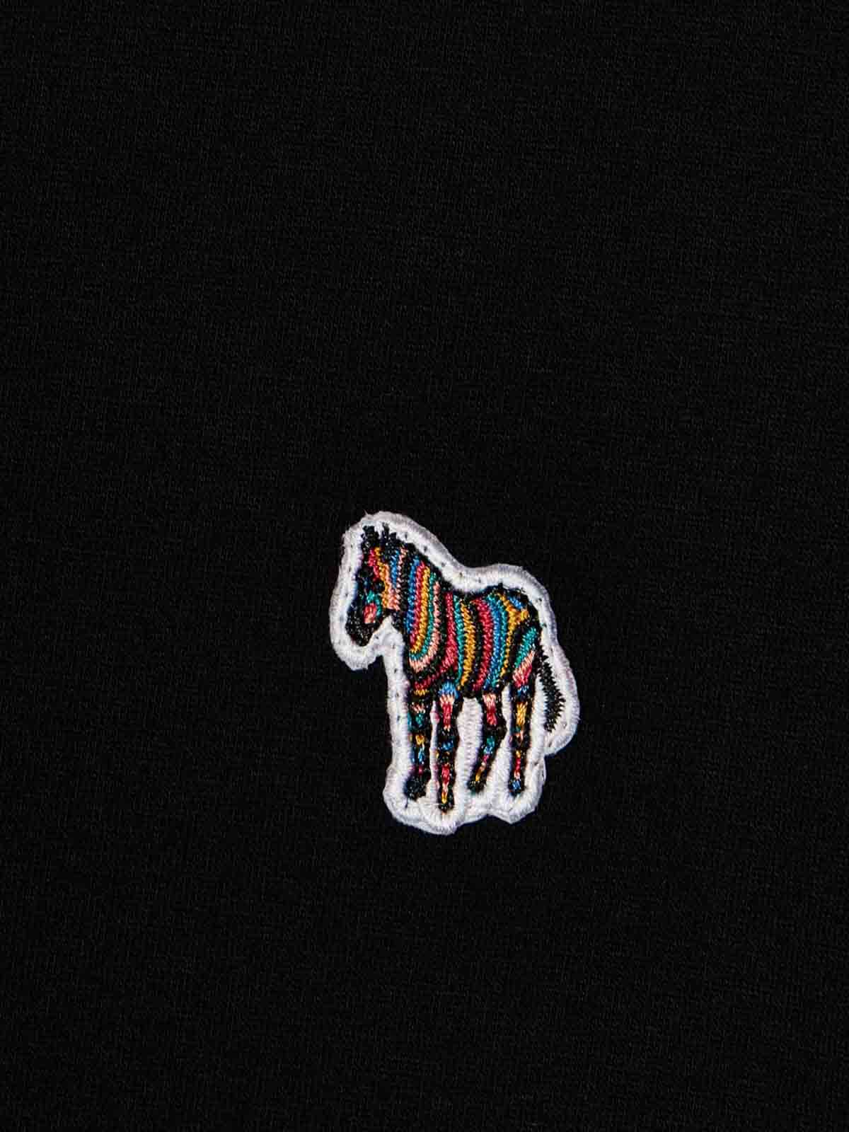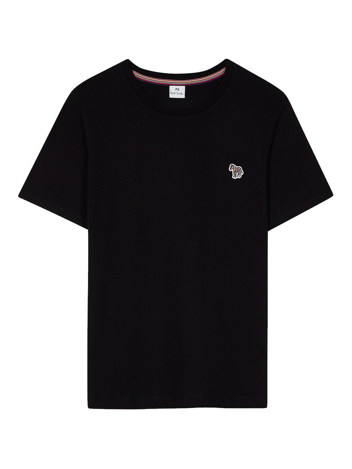 zebra logo T-shirt in nero, T-shirt a maniche corte girocollo nera realizzata in cotone organico al 100%. caratterizzata dal classico motivo ps logo zebra multicolor applicato sul davanti. banda multi