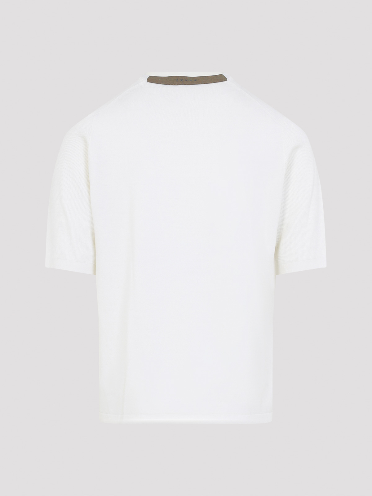 T-shirt Sease in lana vergine bianca waffle di facile manutenzione. realizzato in lana vergine bianca lavorata a maglia extra fine, caratterizzato da scollo rotondo con dettaglio ricamo sul retro, maniche corte e orlo dritto.