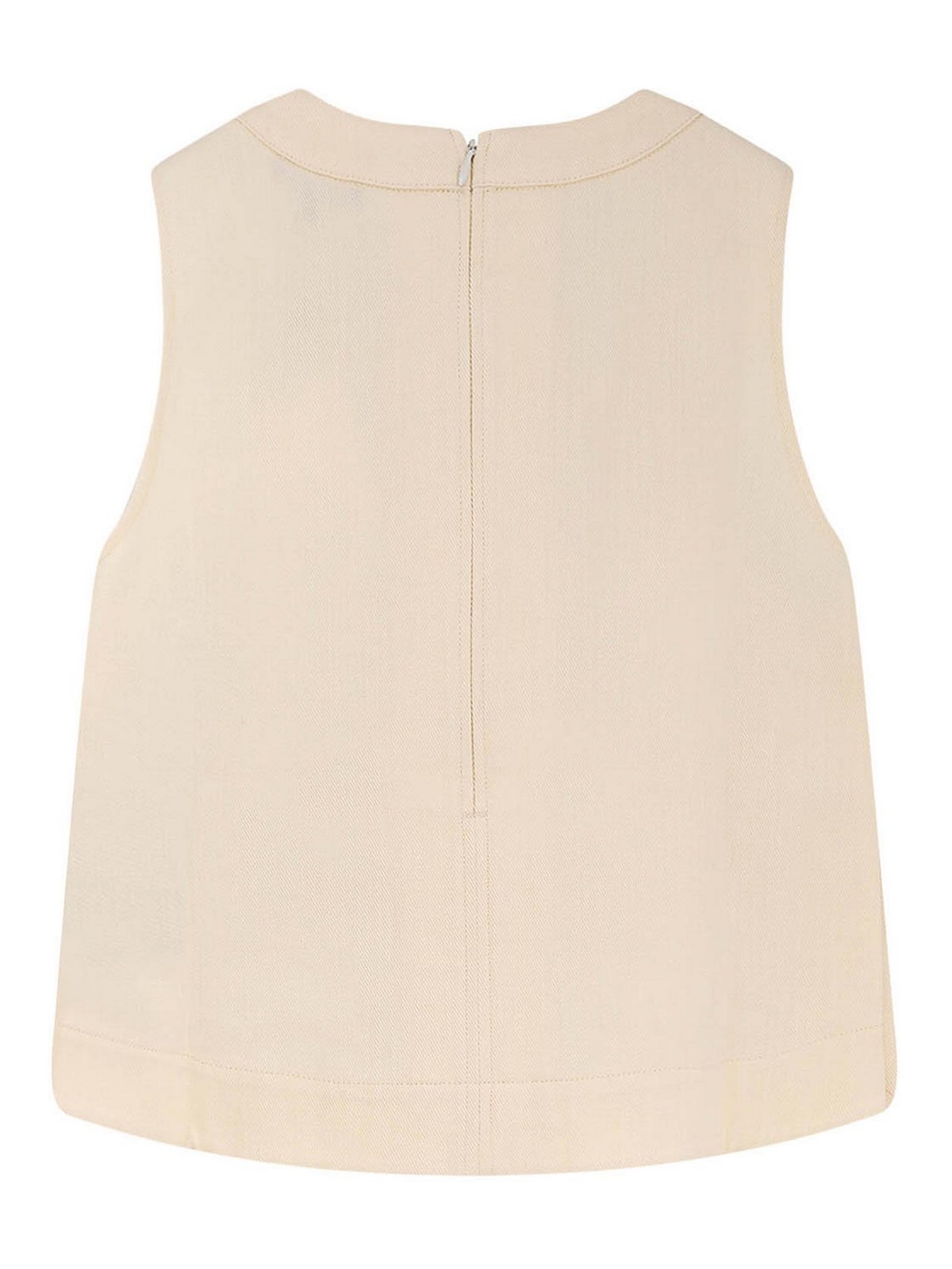 Scollatura arrotondata, smanicato, spacchetti laterali, boxy fit, 100% cotone.