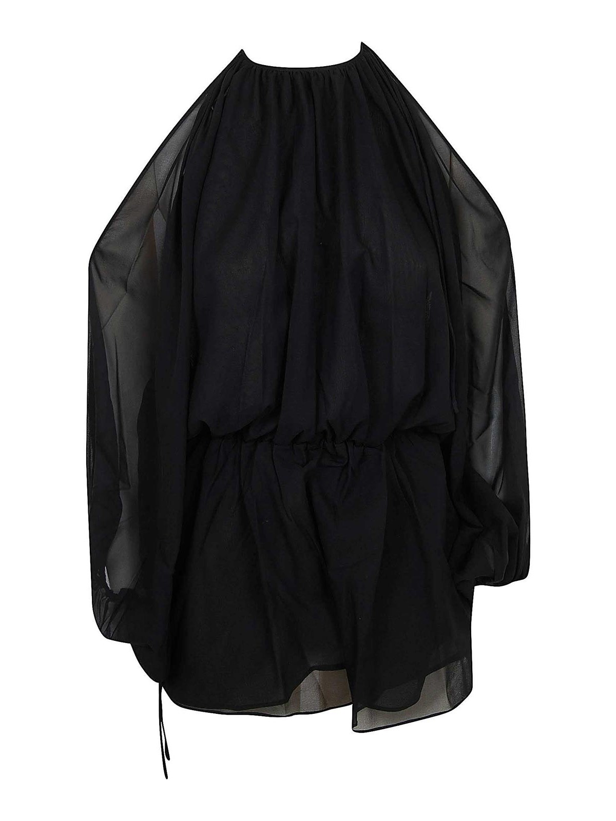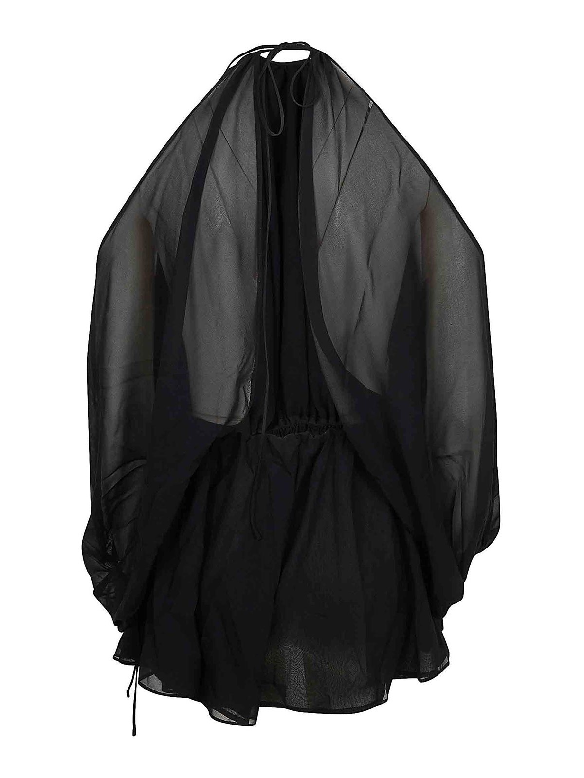 Tuta vesta in georgette naturale di the andamane maniche a palloncino vita elasticizzati shorts design vestibilita' rilassata caratterizzata da scollatura a spalle scoperte fissata dietro collo con dei lacci