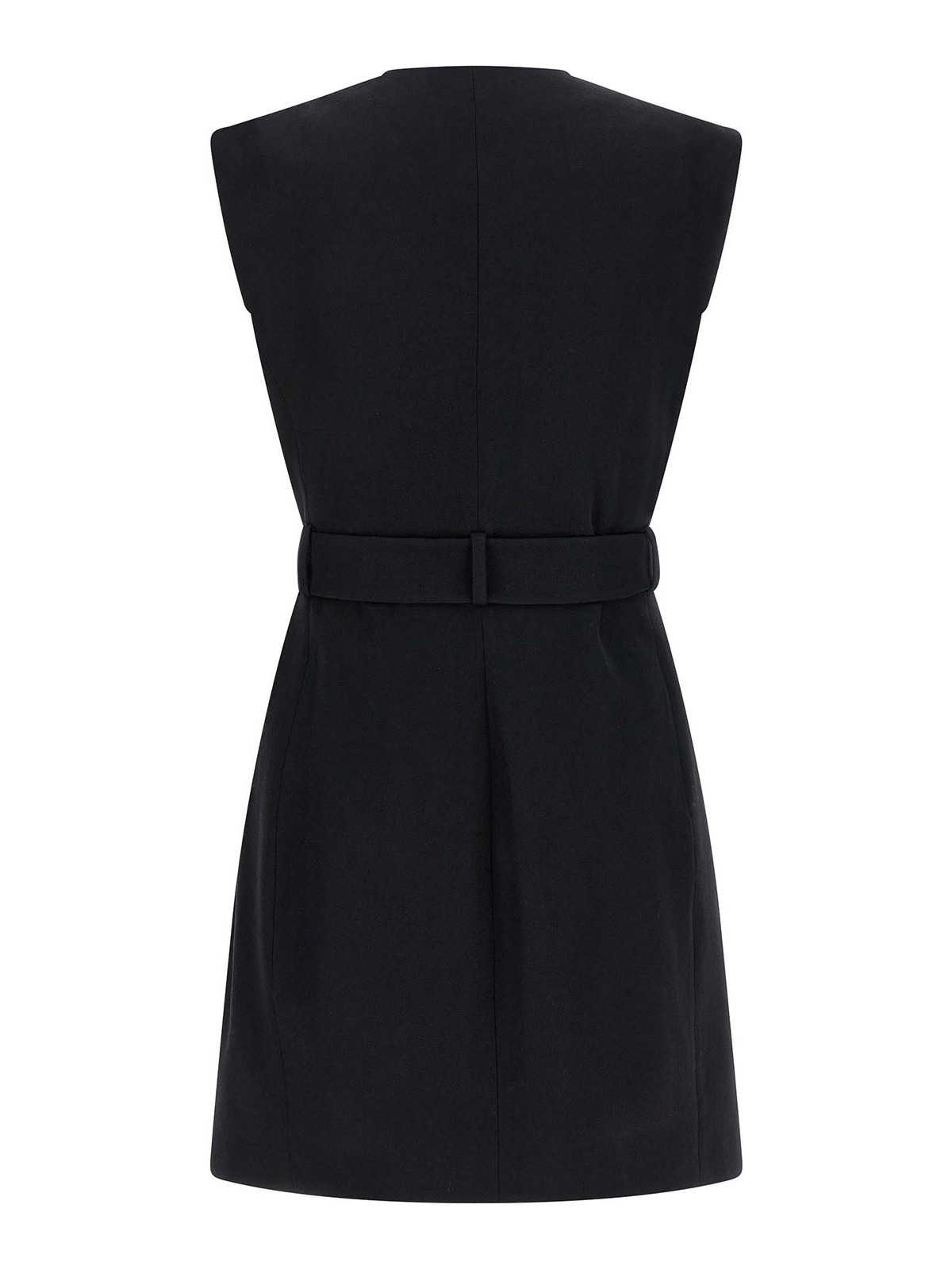 Mini Vestito a portafoglio in grain de poudre con chiusura frontale con bottoni, scollo a V, senza maniche, tracolla imbottita, tasche, foderato, cintura con fibbia 'inno' in metallo removibile. cintura