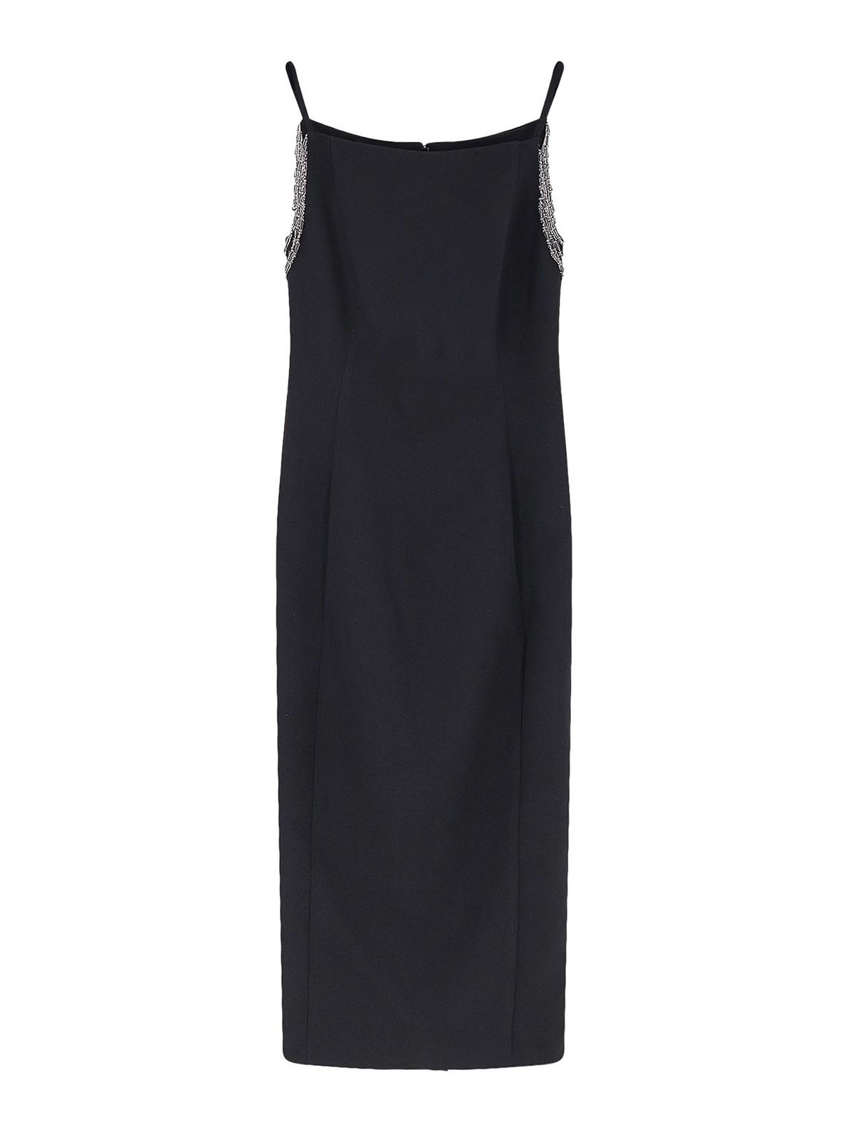 Chiusura con zip posteriore, scollatura squadrata, spacco posteriore, dettaglio gioiello, made in italy, 96% poliestere 4% elastan.
