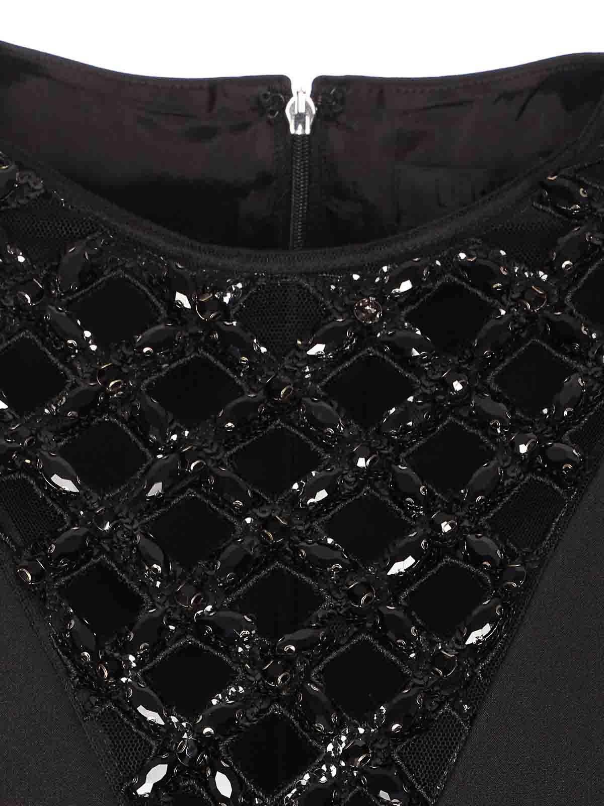 Abito Liu jo nero, chiusura con zip sul retro, dettaglio applicazione sul davanti, modello mini, senza maniche