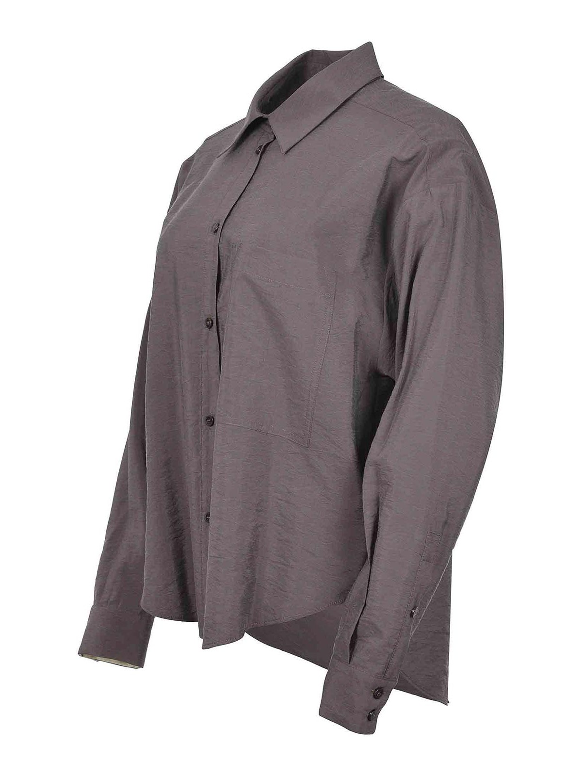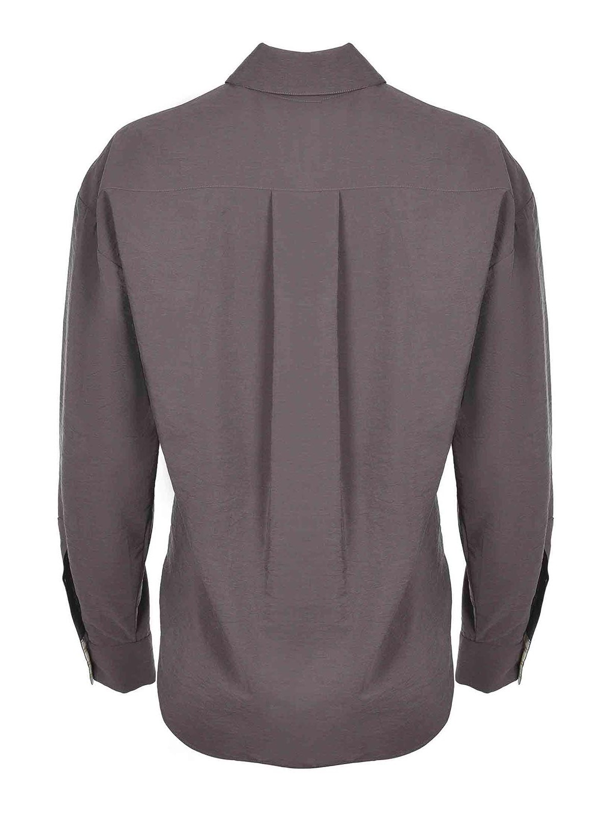 ダークブラウンのシルククレープ製Alysiシャツ。クラシックカラー。フロントボタン留め。胸ポケット。長袖。ボタン付きカフス。93% シルク 17% イタリア製。