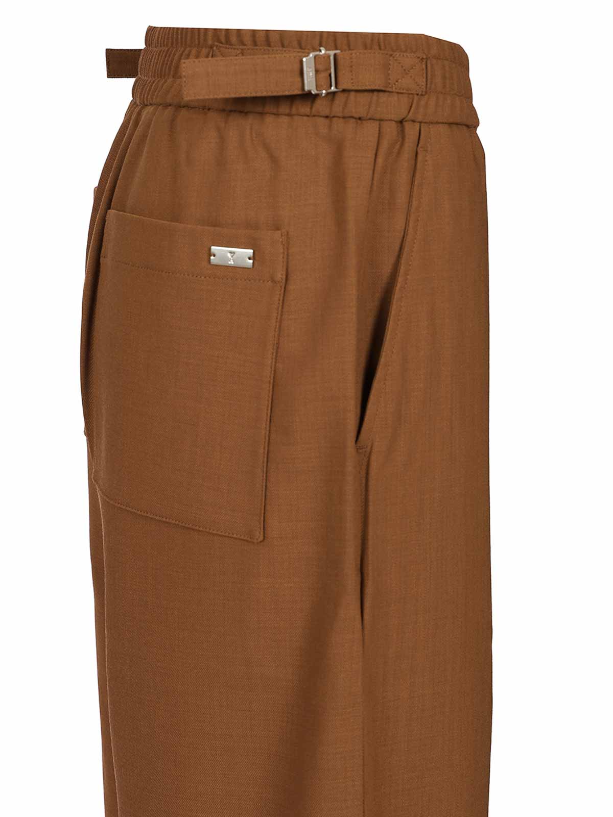 Ami軽量ウールツイルストレッチパンツ。ファスナー開閉、バックパッチポケット、バックポケットにアミ・ド・クールリベット、バックル付きウエストバンド付き。