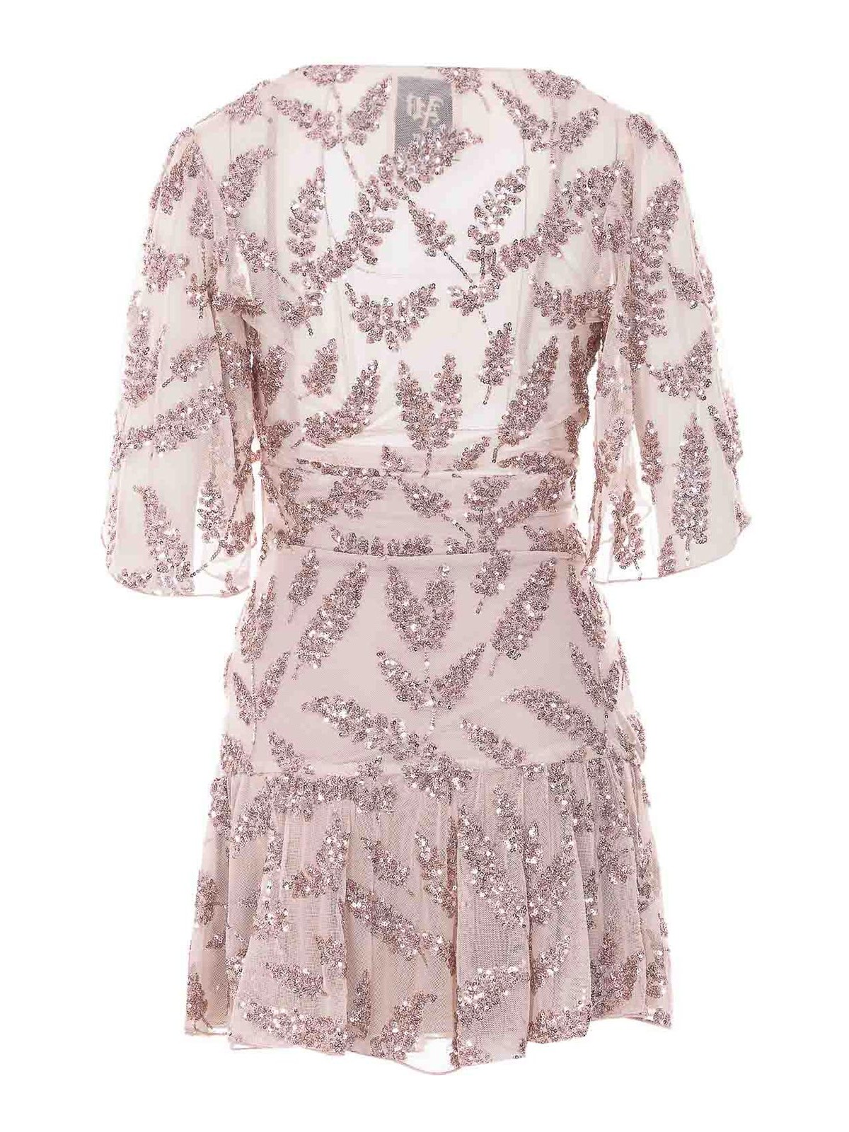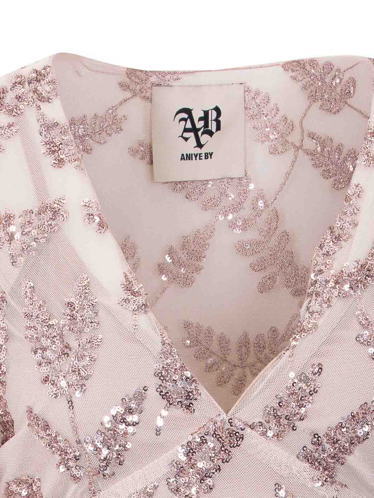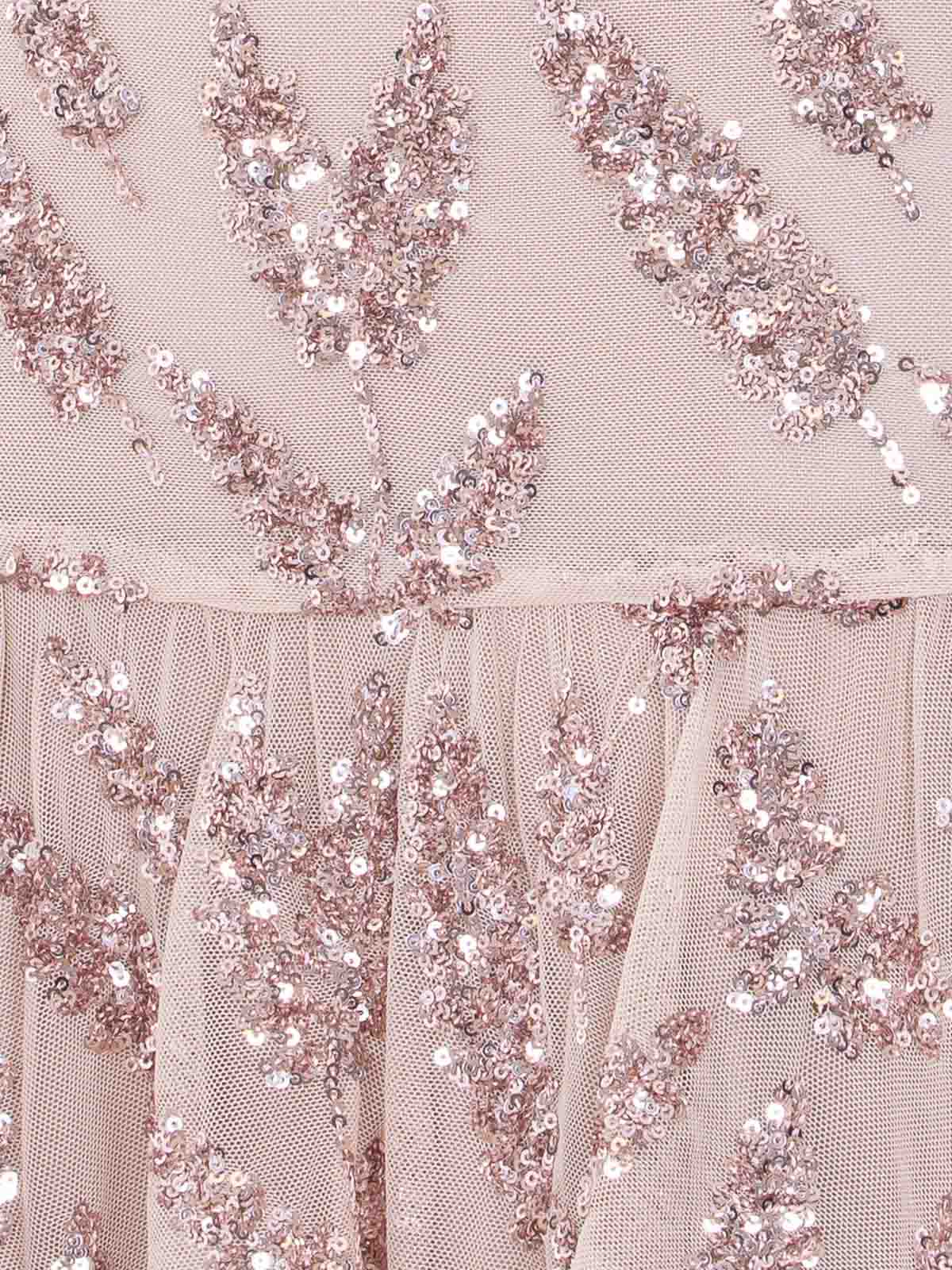 Aniye by Petal rose uma ウェーブドレス、背面にVネック、裏地付き、全面に刺繍とスパンコール、半袖、フレア、透明効果、ロゴカーソル付きの横ファスナー