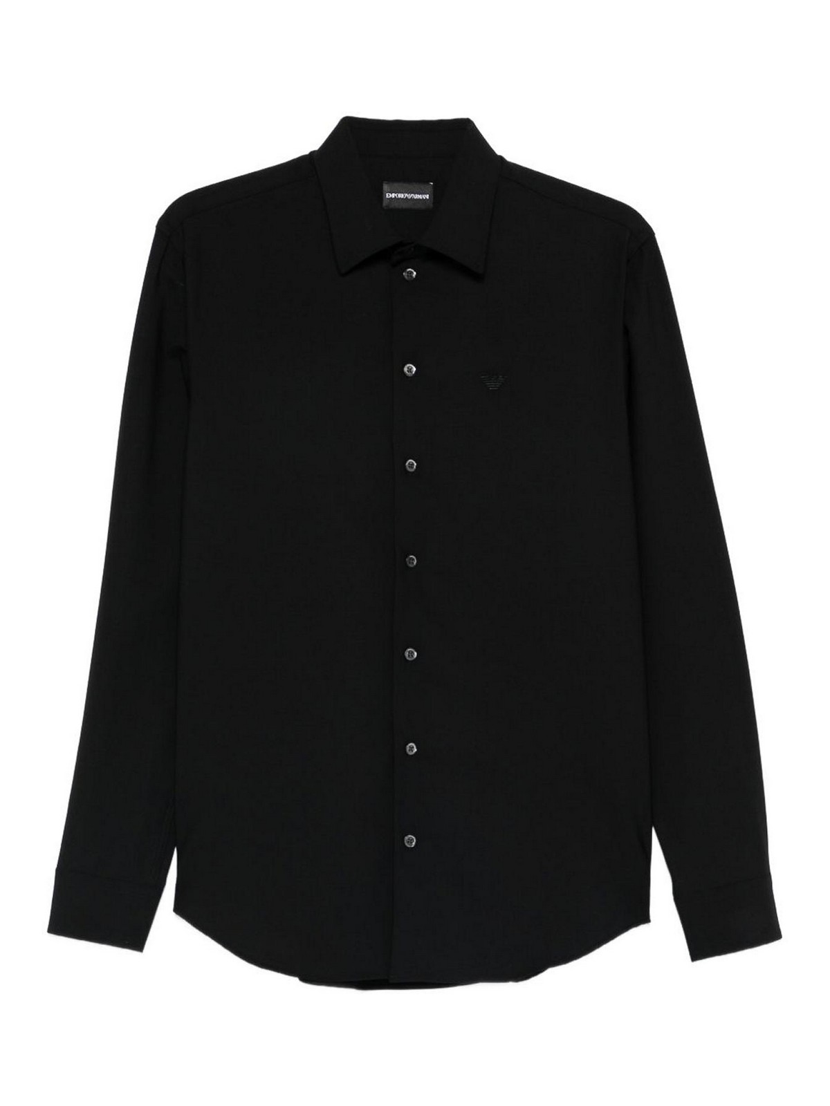 ブラックロングスリーブボタン留め胸ロゴディテール