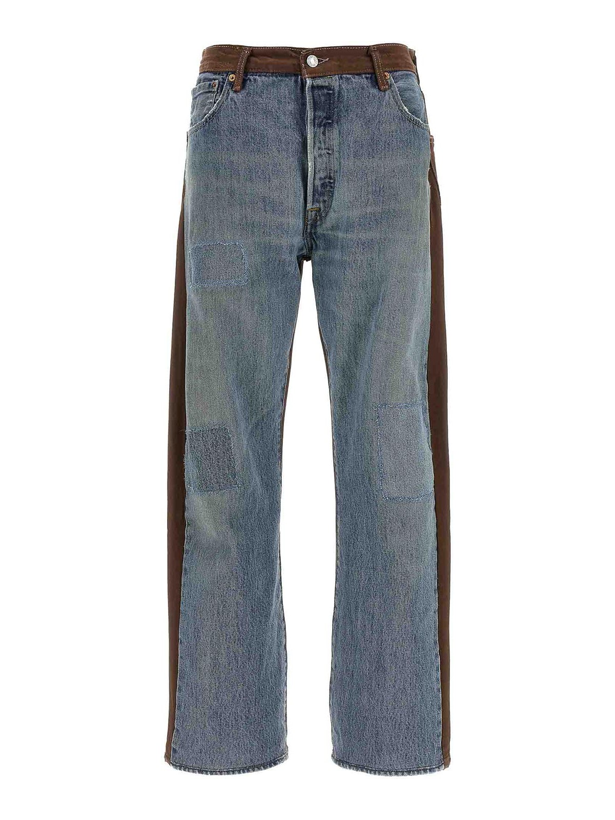 各衣類はユニークで異なります。お客様のサイズで利用できる色、洗濯方法、破損範囲については、お問い合わせください。「ビンテージ・ストレート・リワーク・ハーフシー」コットンデニムジーンズは、コントラストの効いたフロントパネル、ストレートレッグ、フロントボタン留め、5つのポケット、バックにロゴタグが付いています。この製品は、アメリカ西部から収穫された本物のヴィンテージリーバイス501で作られています。各作品はユニークです。ヴィンテージ服のユニークな特徴により、衣服には欠陥とは見なされない欠陥がある場合があり、デニムの色合いは若干異なる場合があります。