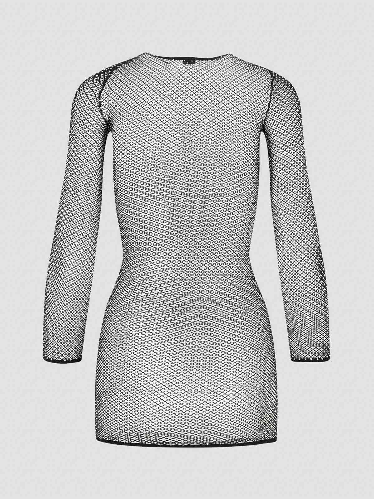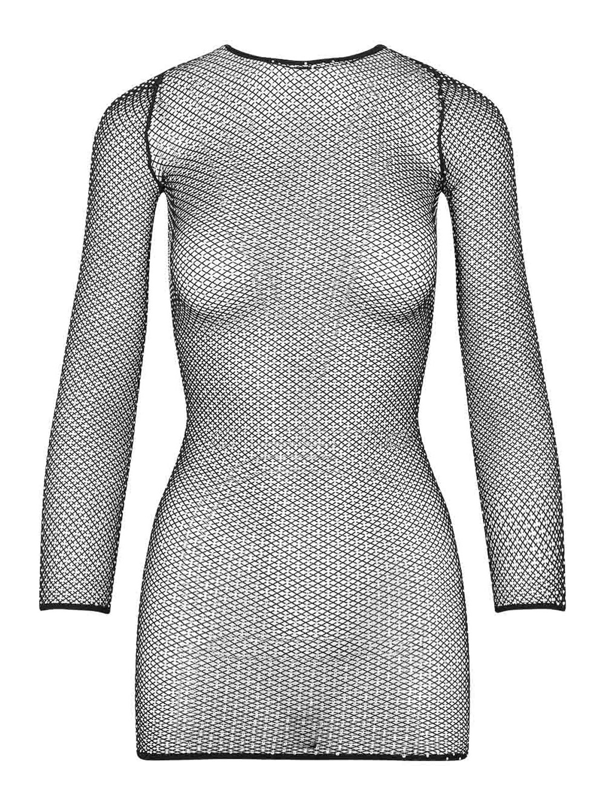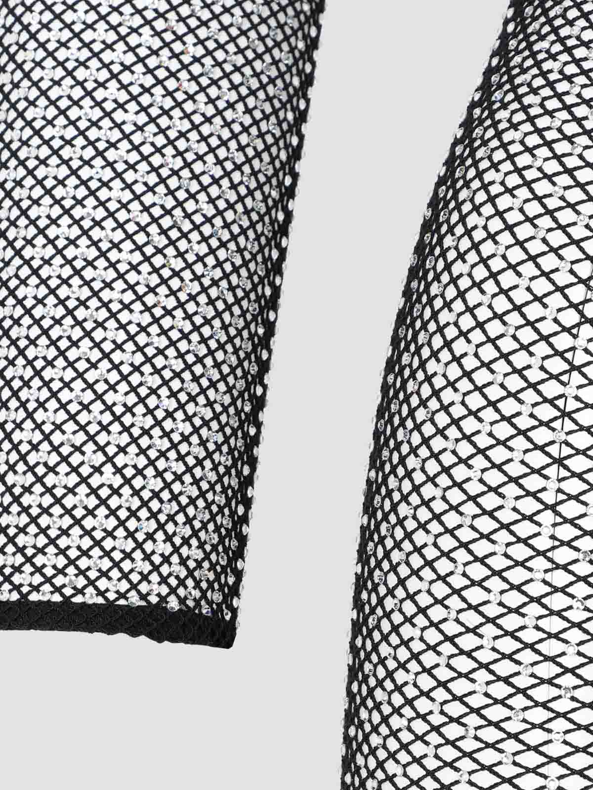 Balenciaga ブラッククリスタルメッシュミニトップ。ポリアミドとエラステインのブレンドで作られています。ラウンドカラー、全体にクリスタルのディテールをあしらったメッシュ、ロングスリーブ、ストレートヘム。