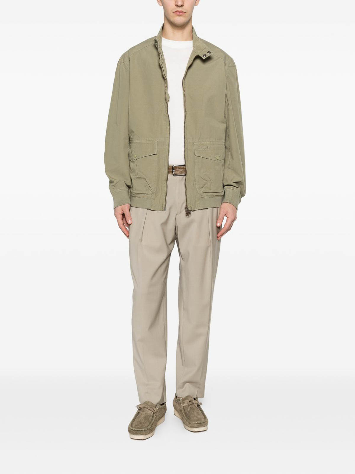 ハリントンジャケットにインスパイアされたスマートカジュアルなデザインが特徴のバーバーのブリーチドオリーブコットンのマトレージャケット。このジャケットには、快適で現代的なフィット感を実現するスタンドカラーと伸縮性のある裾と袖口が付いており、快適で現代的なフィット感を実現しています。ジーンズやチノパン、またはリラックスした日常の装いに最適で、カジュアルな装いにモダンで洗練されたタッチをもたらします。街歩き、週末の服、またはカジュアルなオフィススタイルに最適です。
