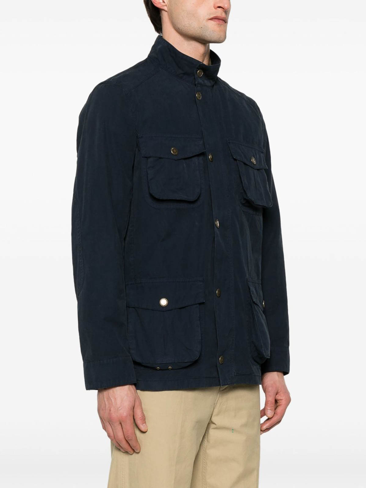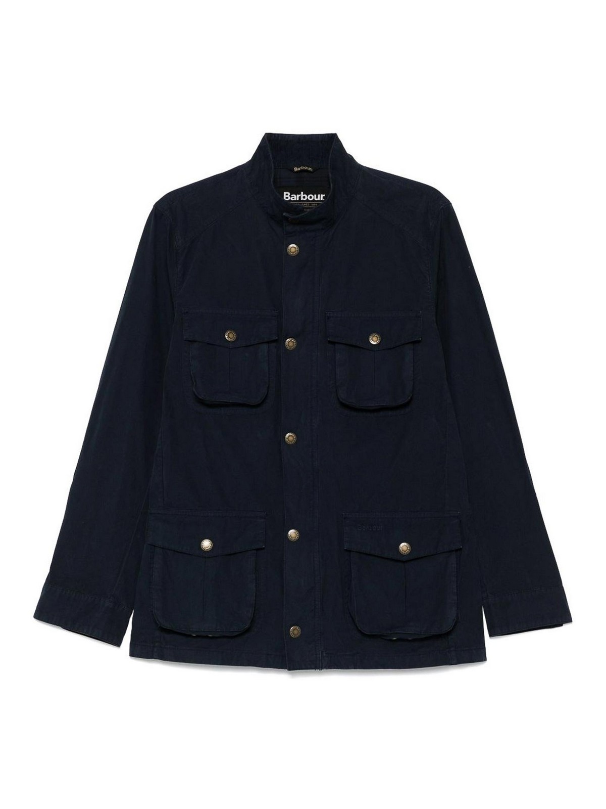 barbourブランドのポケット付きブルーコットンコーブリッジジャケット