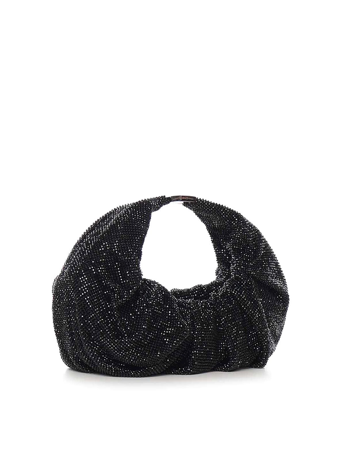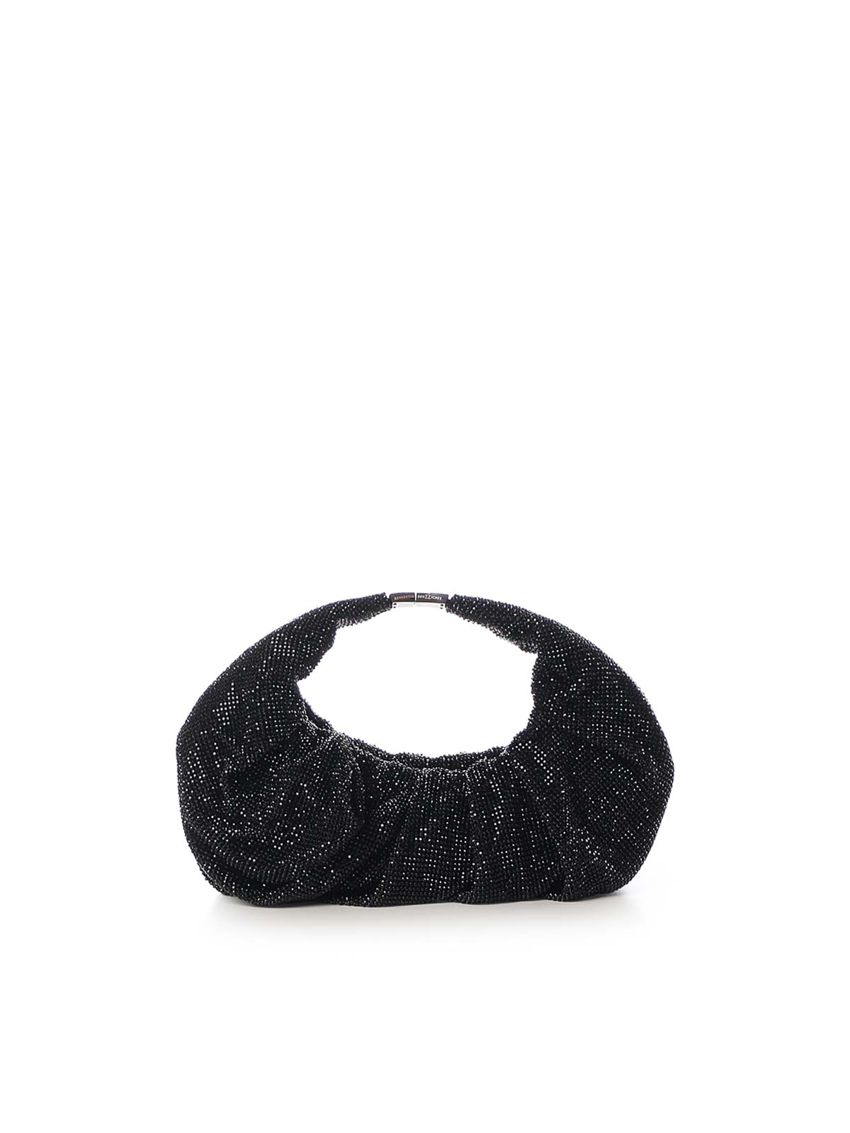 クリスタルラインストーンがちりばめられたアルミニウムメッシュ製、シルクサテンの裏地、寸法:26 x 24 x 4 cm、イタリア製、デザイナーカラー:ジェームスボンド
