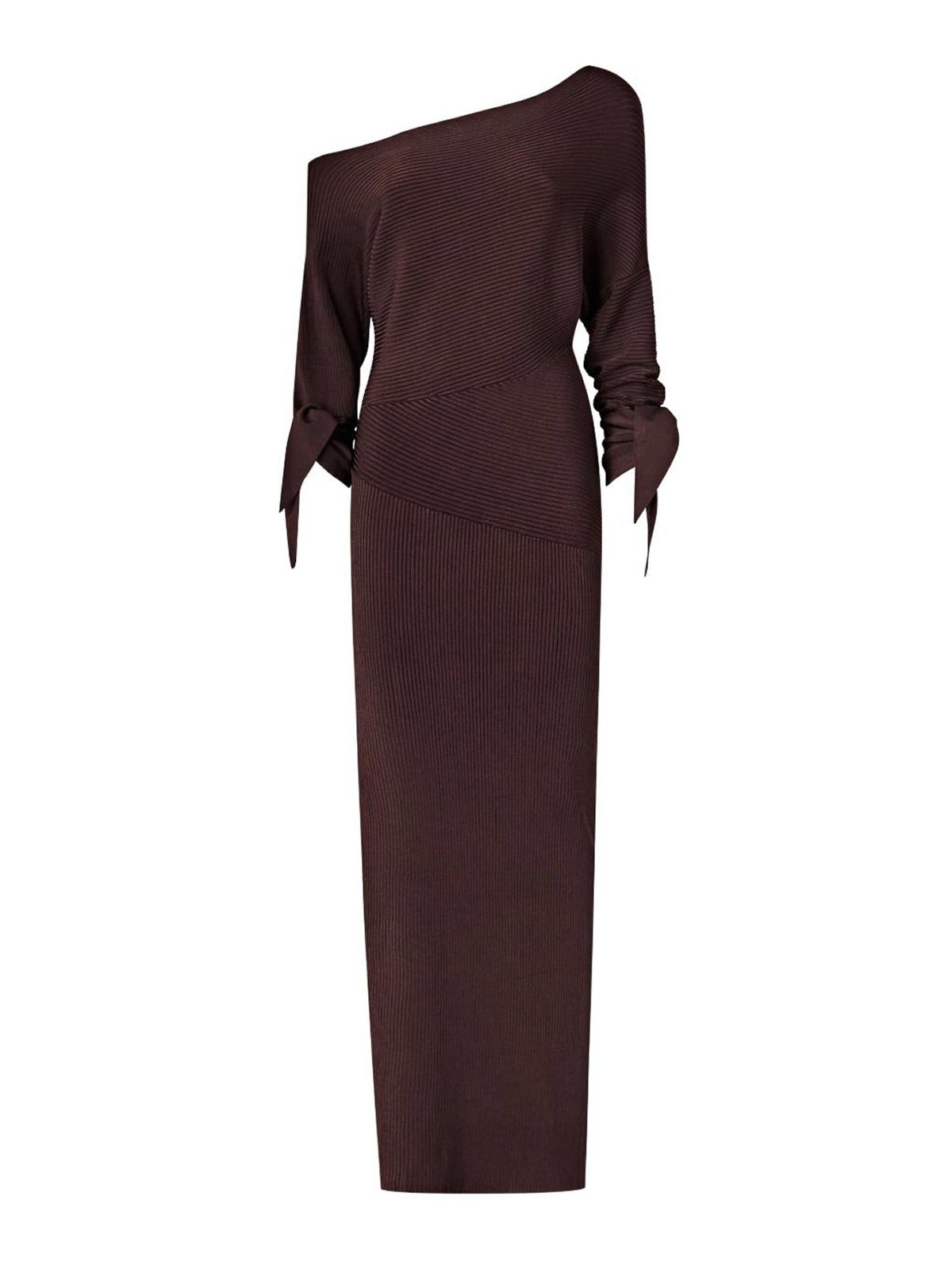 pinkoのブラウンワンショルダーのブリナロングドレス