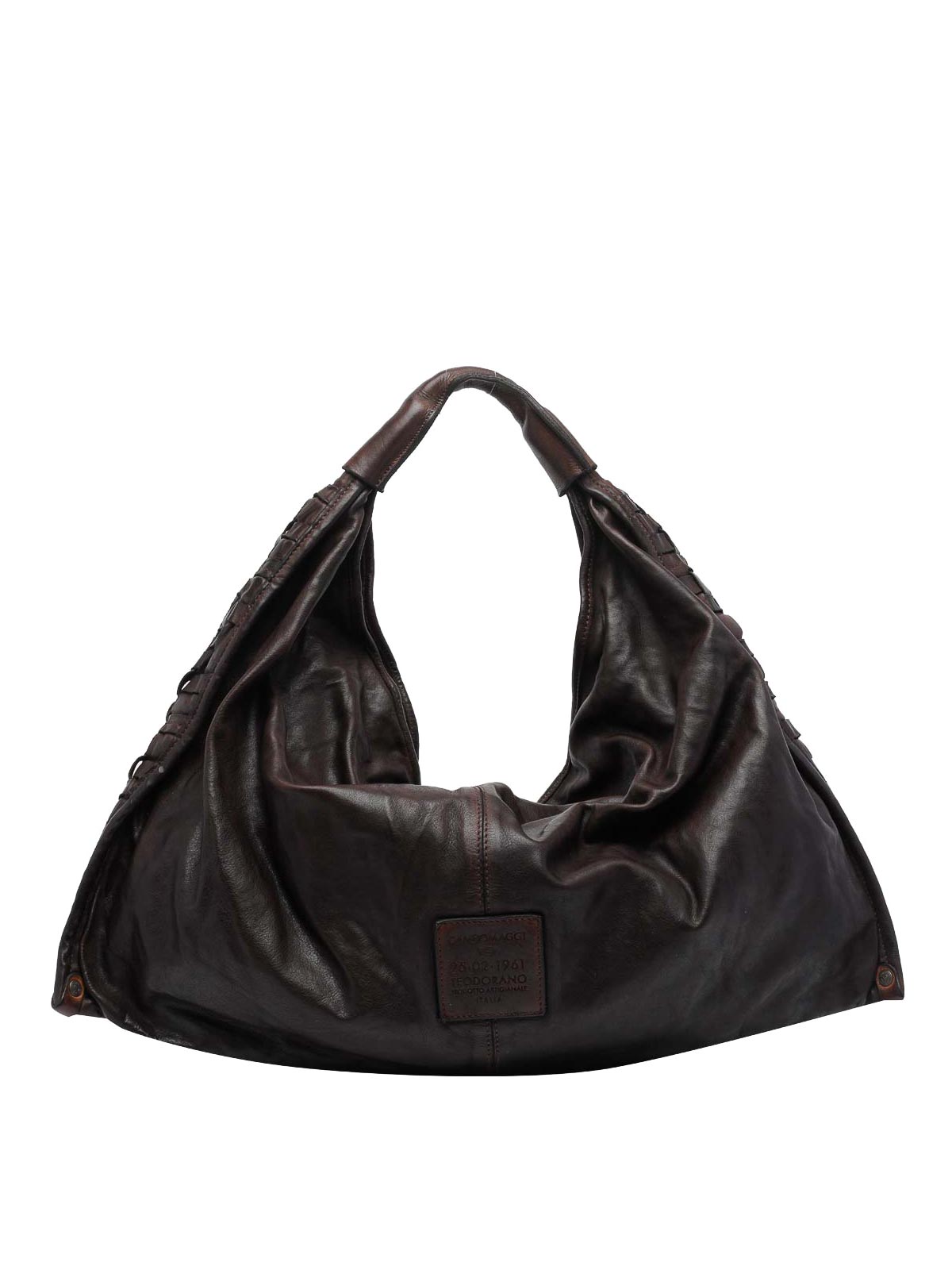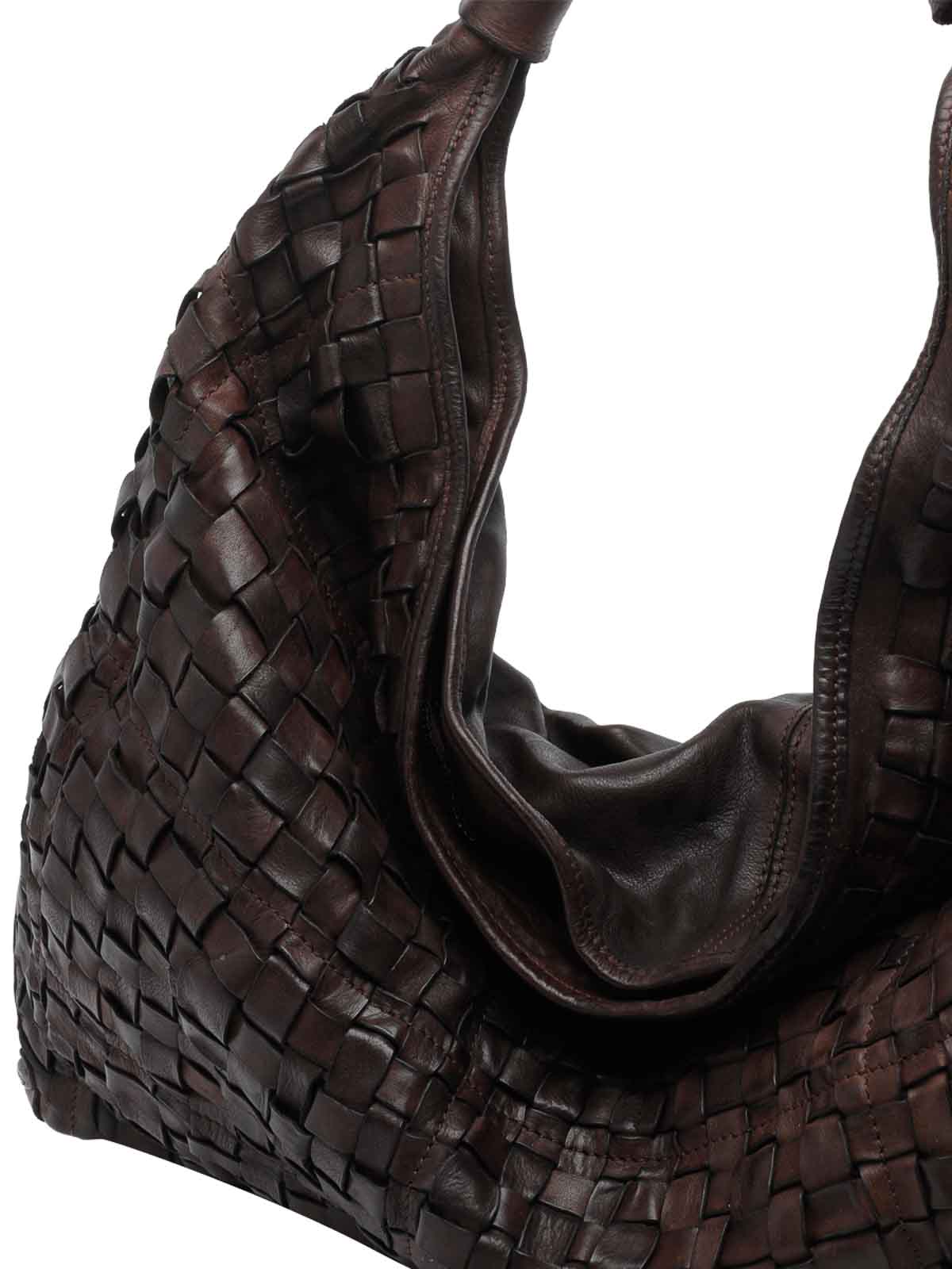 Campomaggi ブラウンアテナハンドバッグ、ジップクロージャー、ファスナー付きインナーポケット、オープンポケット1つ、ショルダーハンドル、イントレチャート