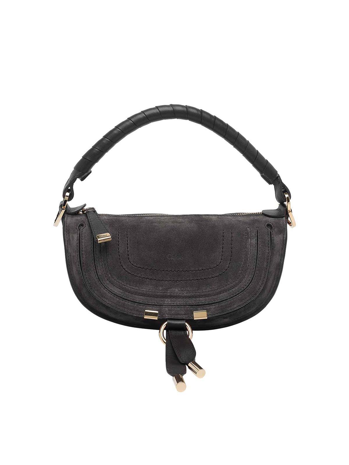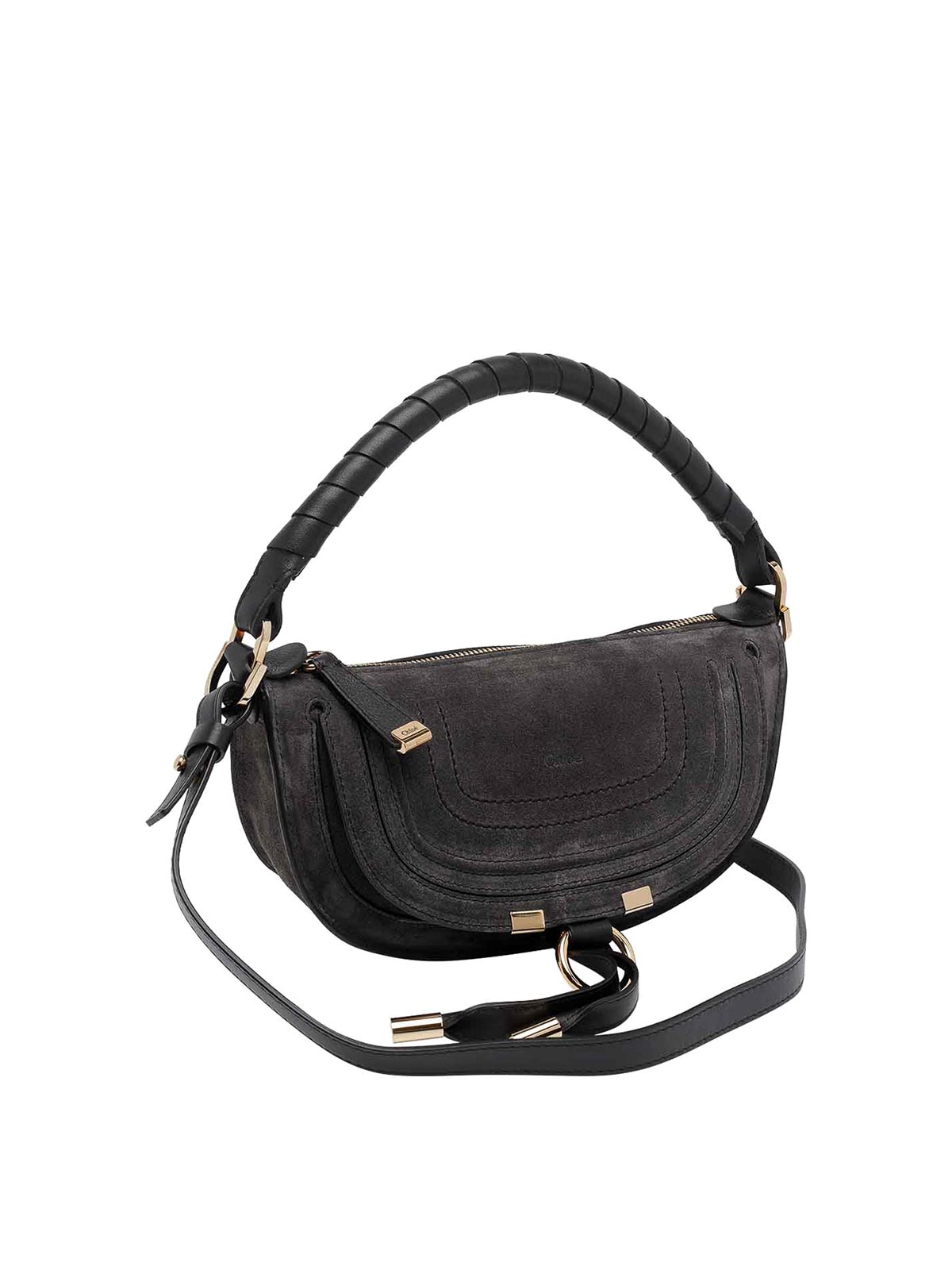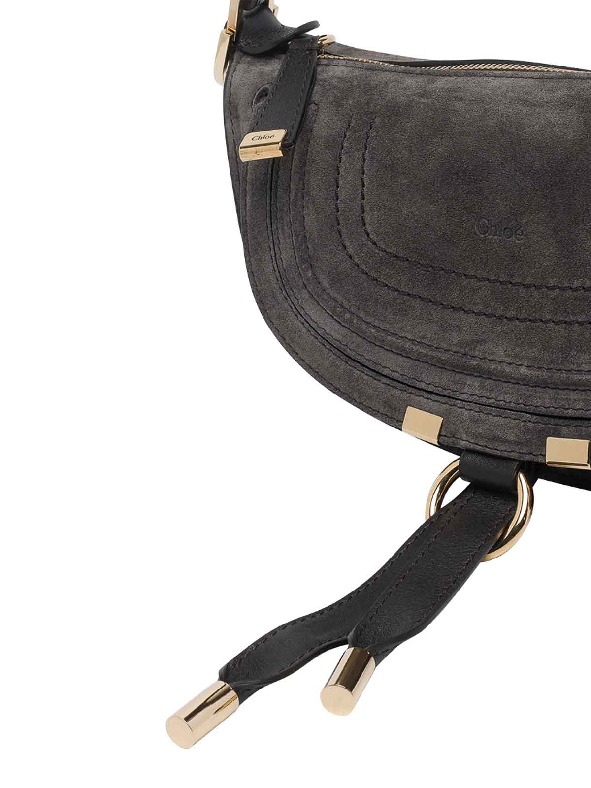 Chlo kohl ブラウンマーシーショルダーバッグ、ジップクロージャー、内側オープンポケット、フラップクロージャー付き外部ポケット、ハンドル1つ、調節可能で取り外し可能なショルダーストラップ、スエード