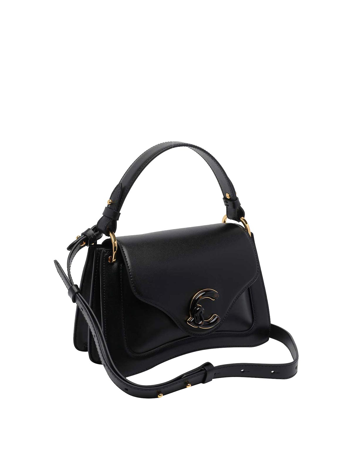 Coccinelle ブラックC-MEハンドバッグ、マグネットクロージャー、内側ファスナーポケット、取り外し可能なストラップ、レザーアッパー、正面ロゴ