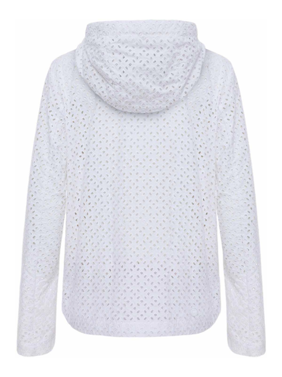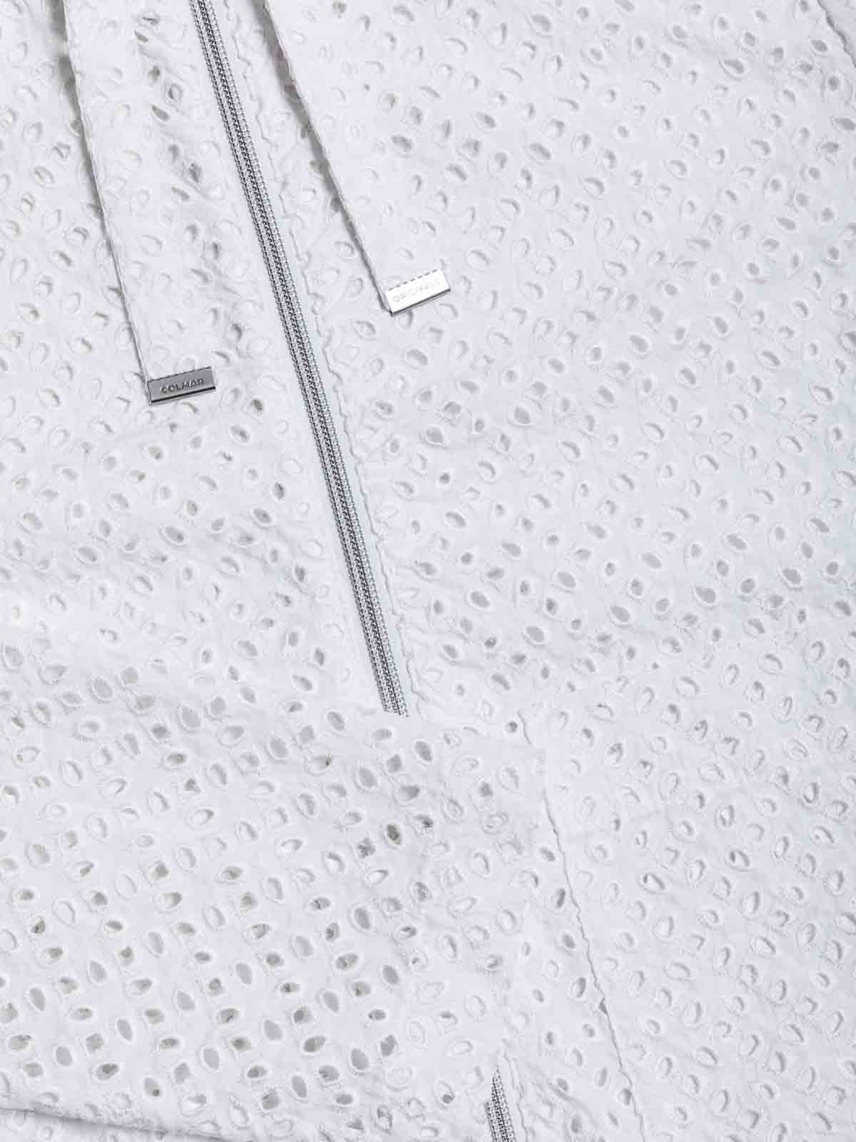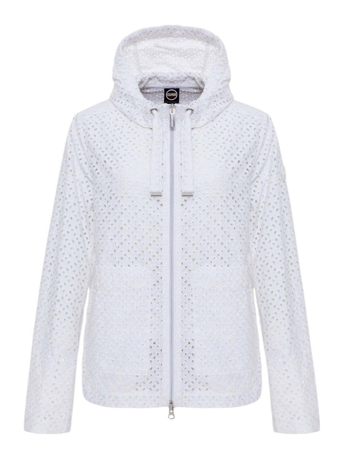 コルマールオリジナルのホワイトブロデリーアングレーズジャケット、ブロデリーアングレーズ効果のある幾何学模様の穴あき細工が特徴のレディースジャケット。軽量でパッドのない構造により、穏やかな季節に洗練されたルックスを完成させるのに理想的です。調節可能なドローストリング付きの固定フード、ダブルスライダージップ付きのフロントクロージャー、サイドポケットを備えています。機能性と洗練さを兼ね備えています。下部のドローストリングでフィット感を調整でき、Colmar Originalsのロゴが付いています左袖と後ろのCパッチがデザインのサインです。刺繍アングレーズ効果のある穴あき細工ダブルスライダージッパークロージャー、固定フード、調節可能なドローストリング、下部に調節可能なドローストリング、パッドなし左袖にコルマールオリジナルのロゴ、背面にCパッチ、レギュラーフィット、外側の生地構成:ポリアミド 100%