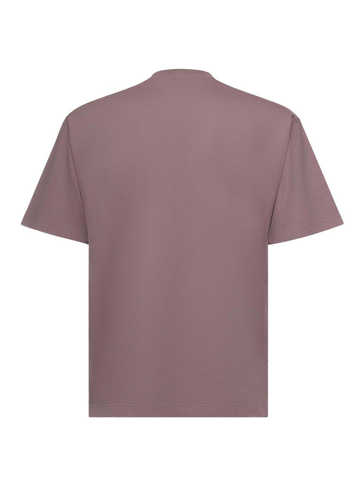 オーガニックコットンジャージー製、リブ編みのクルーネック、半袖、レギュラーフィット、表示サイズはS、デザイナーカラー:パープルグレー