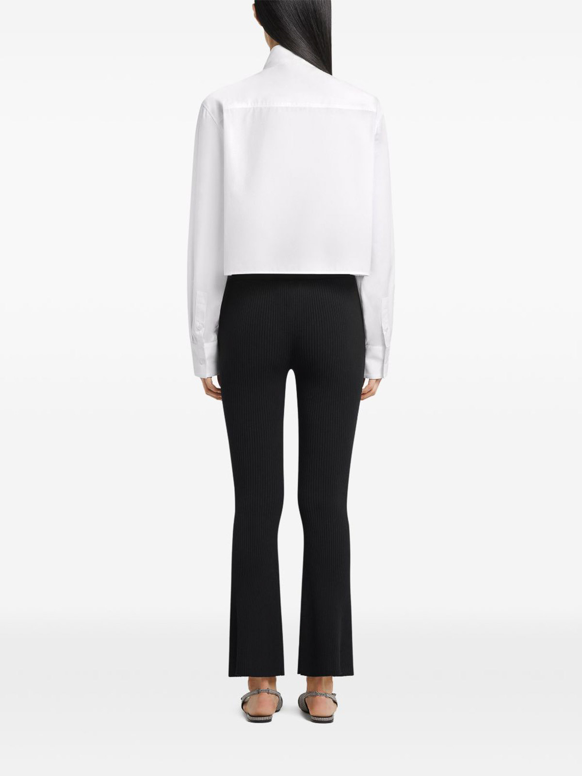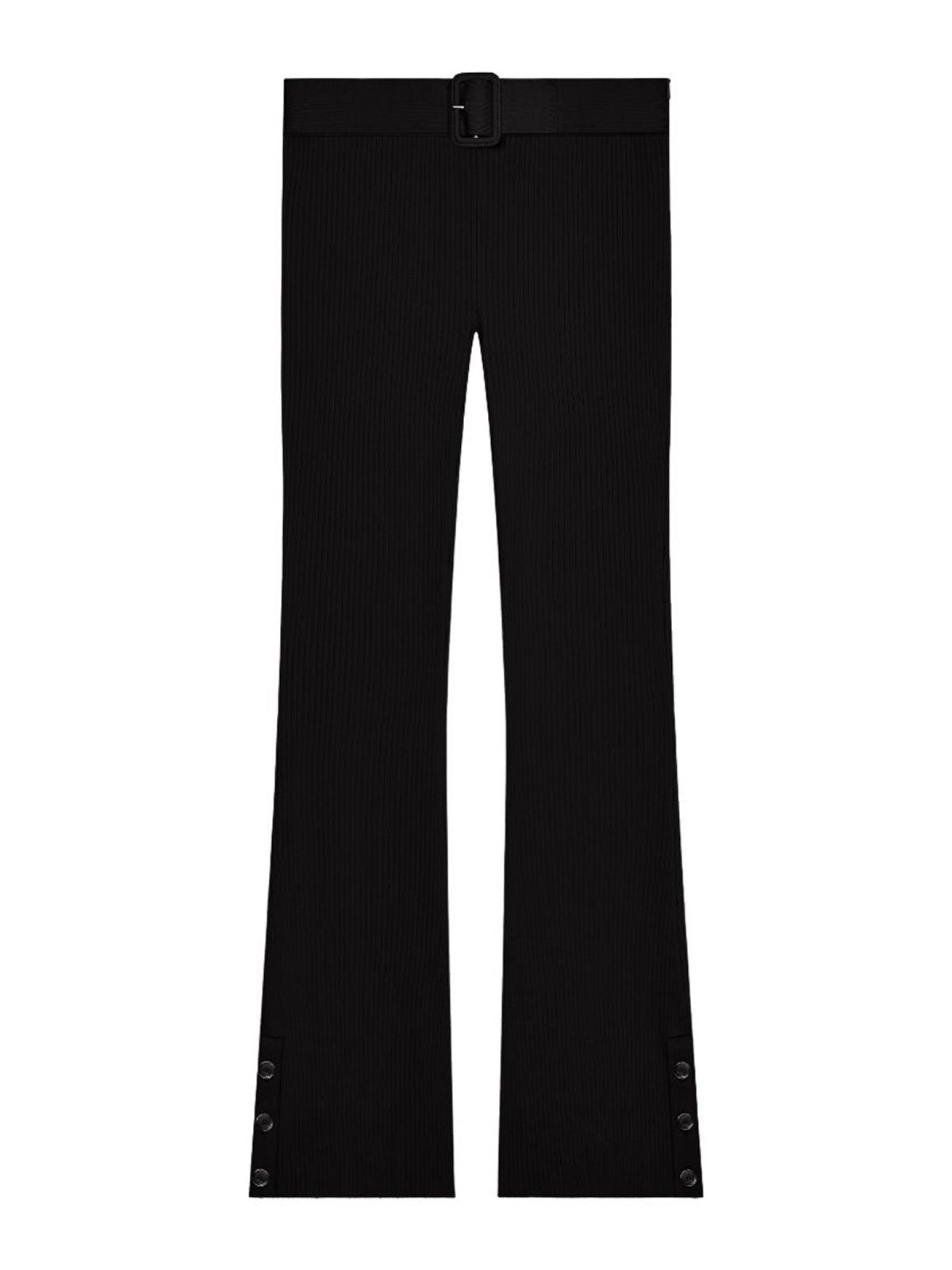 ブラックリブニットベルトボタンディテールカプリ丈フレアヘム