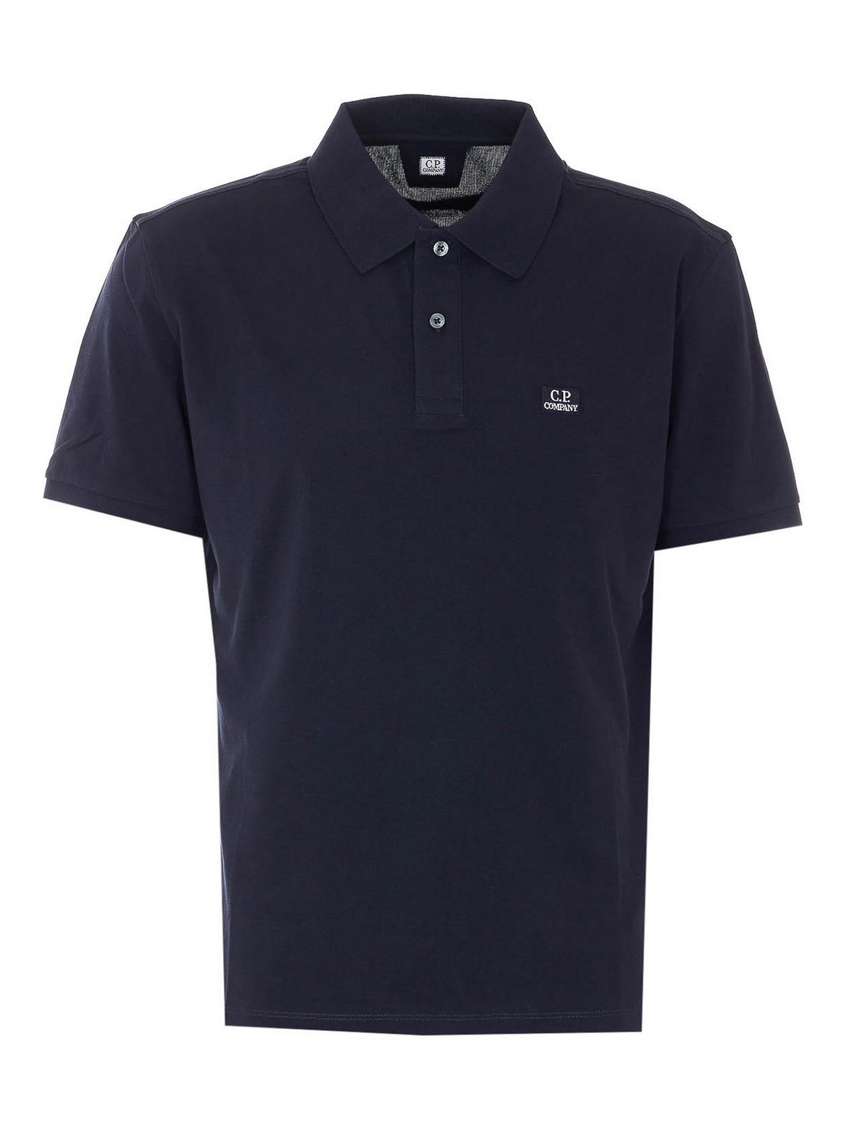 C.P. 社のトータルエクリプスポロ、ボタン留め、レギュラーカラー、半袖、前面に刺繍