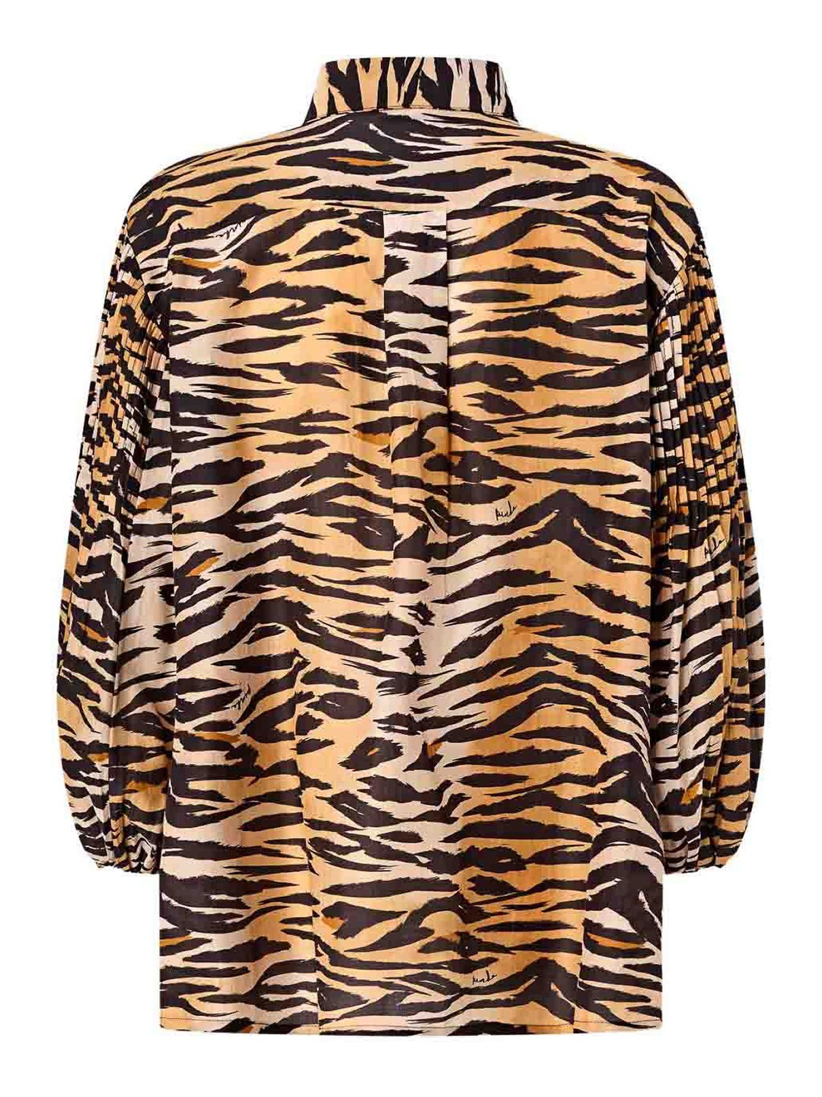 Pinkoのタイガープリントをあしらったコットンとシルクのダーシーブラウス