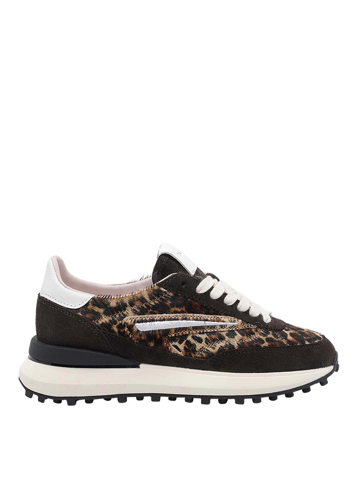 D.A.T.E. athleta animalier スニーカー、ラウンドトウ、ファブリックアッパー、ラバーソール、ラテラルポニーエフェクト、ラテラルロゴ、レースクロージャー