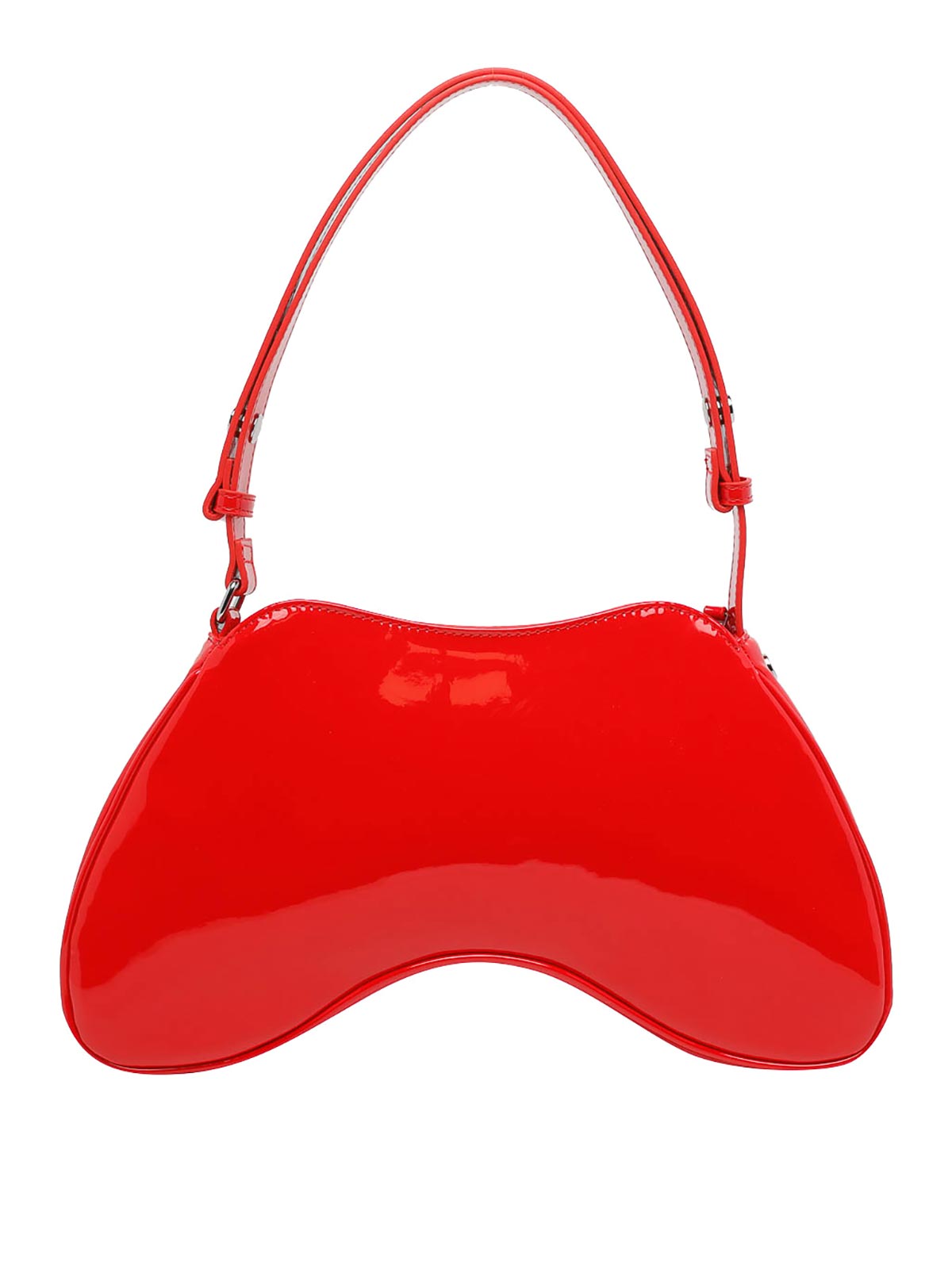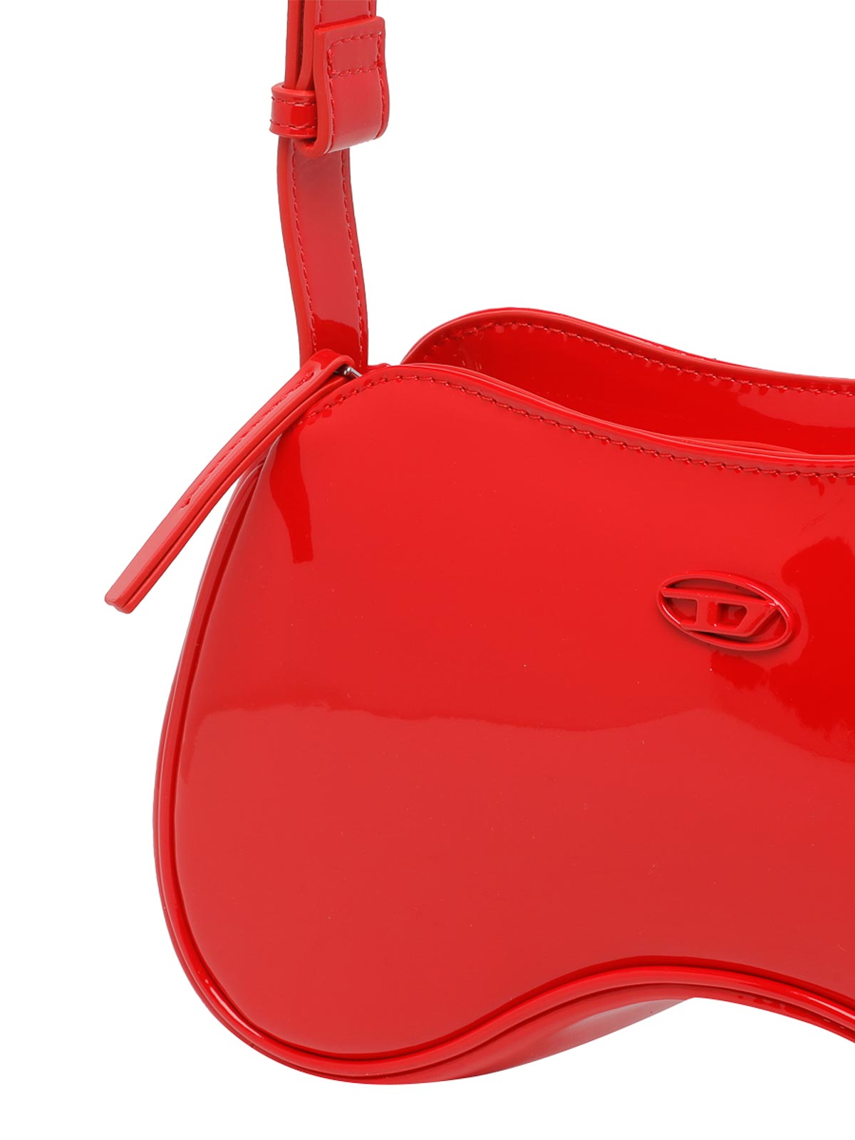 ディーゼルレッドプレイショルダーバッグ、ファスナー開閉、調節可能ストラップ、パテントレザーモデル