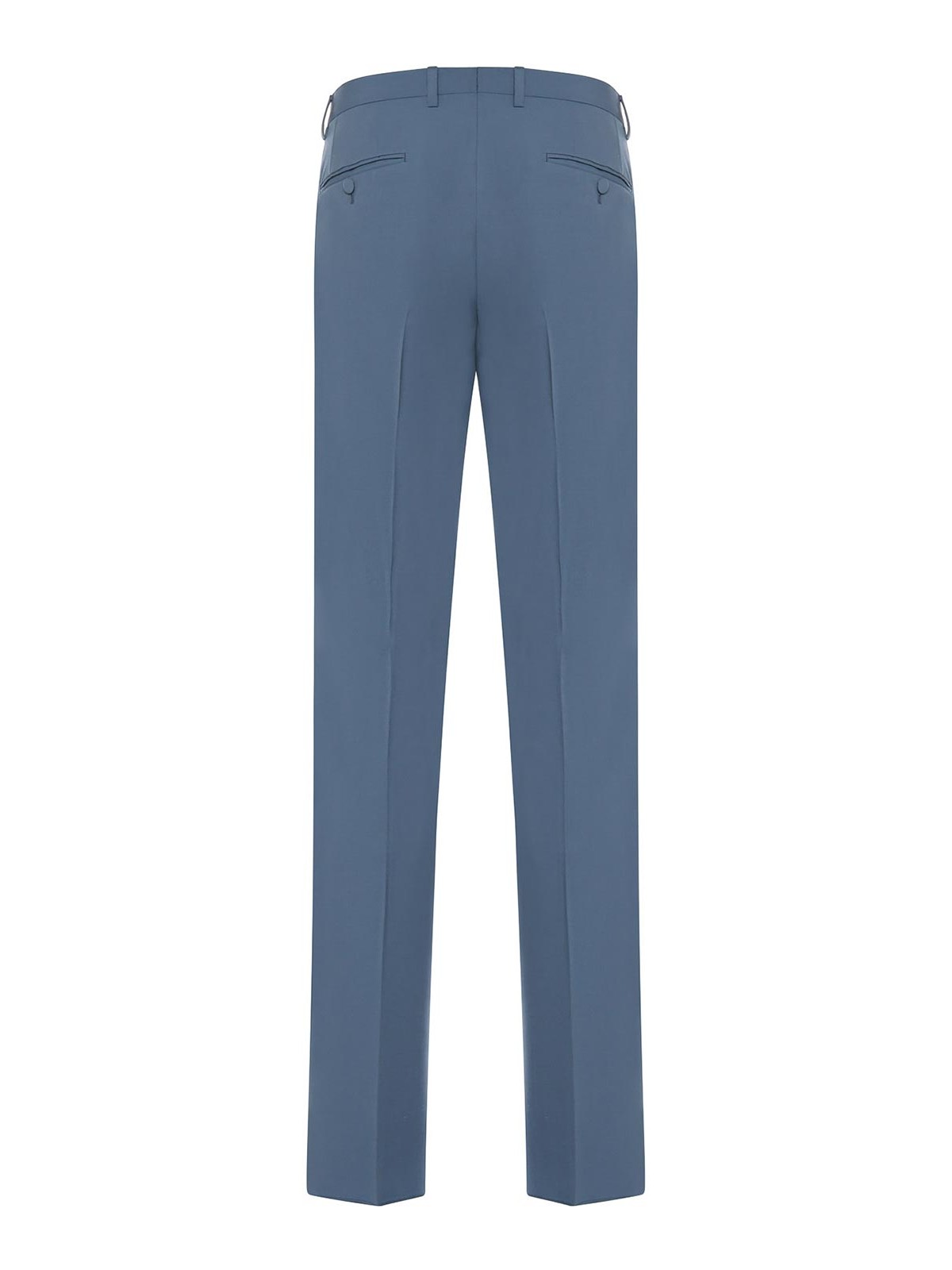 ベルトループ付きウエスト、バックウェルトポケット、レギュラーフィット、イタリア製、表示サイズは48、色:avio