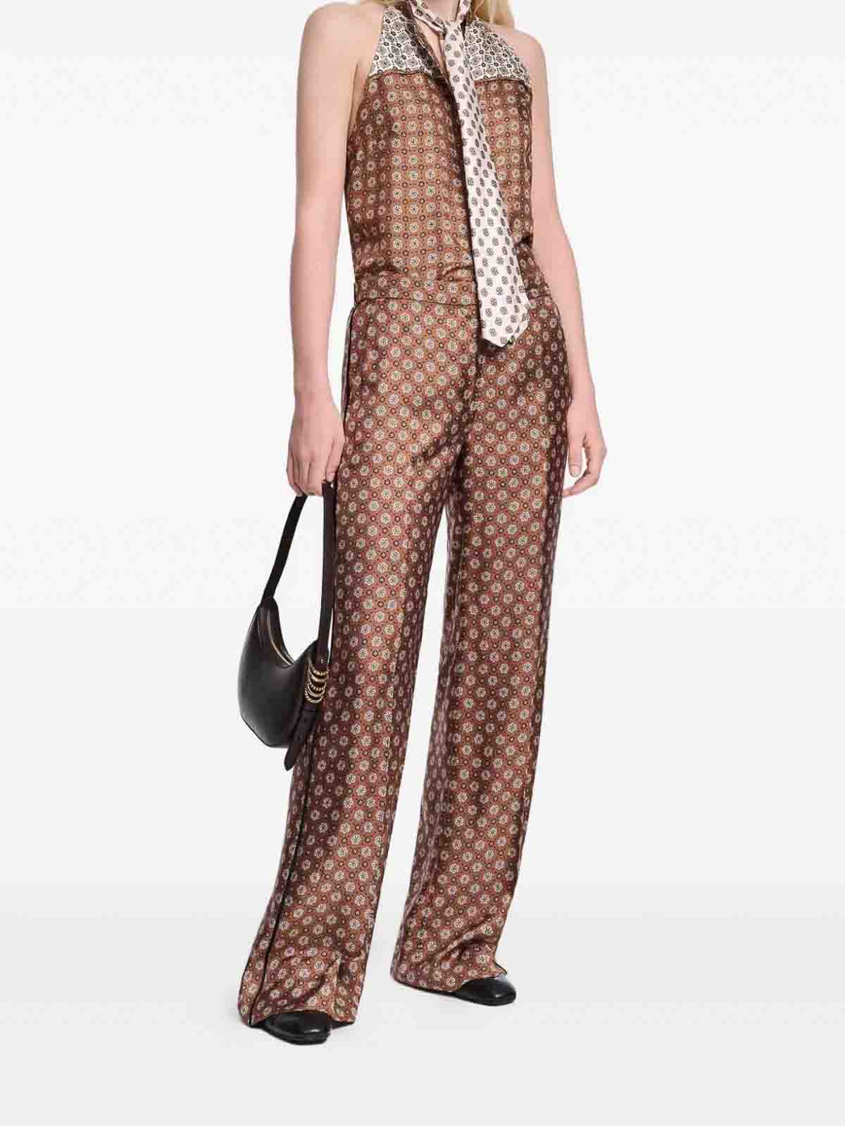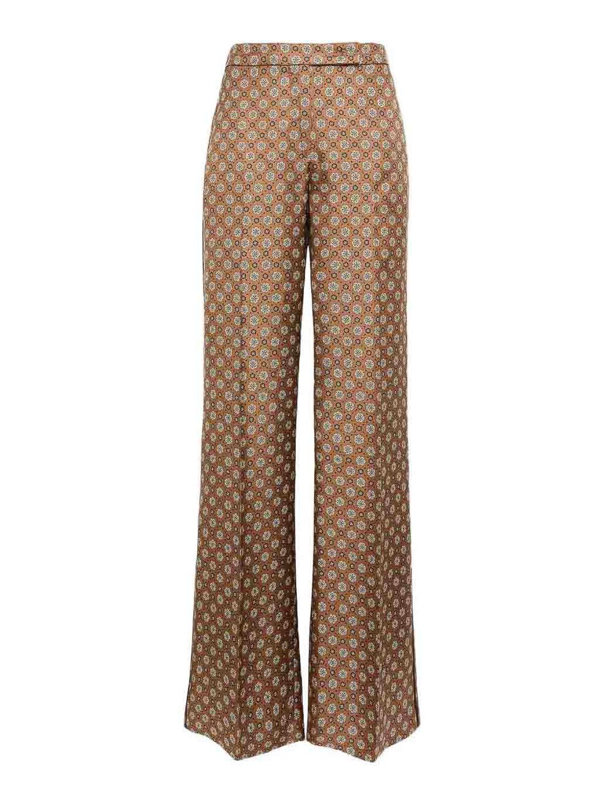デザイナービッグタイブラウンオールオーバーパターンサイドストライプコンシールベルトループワイドレッグ