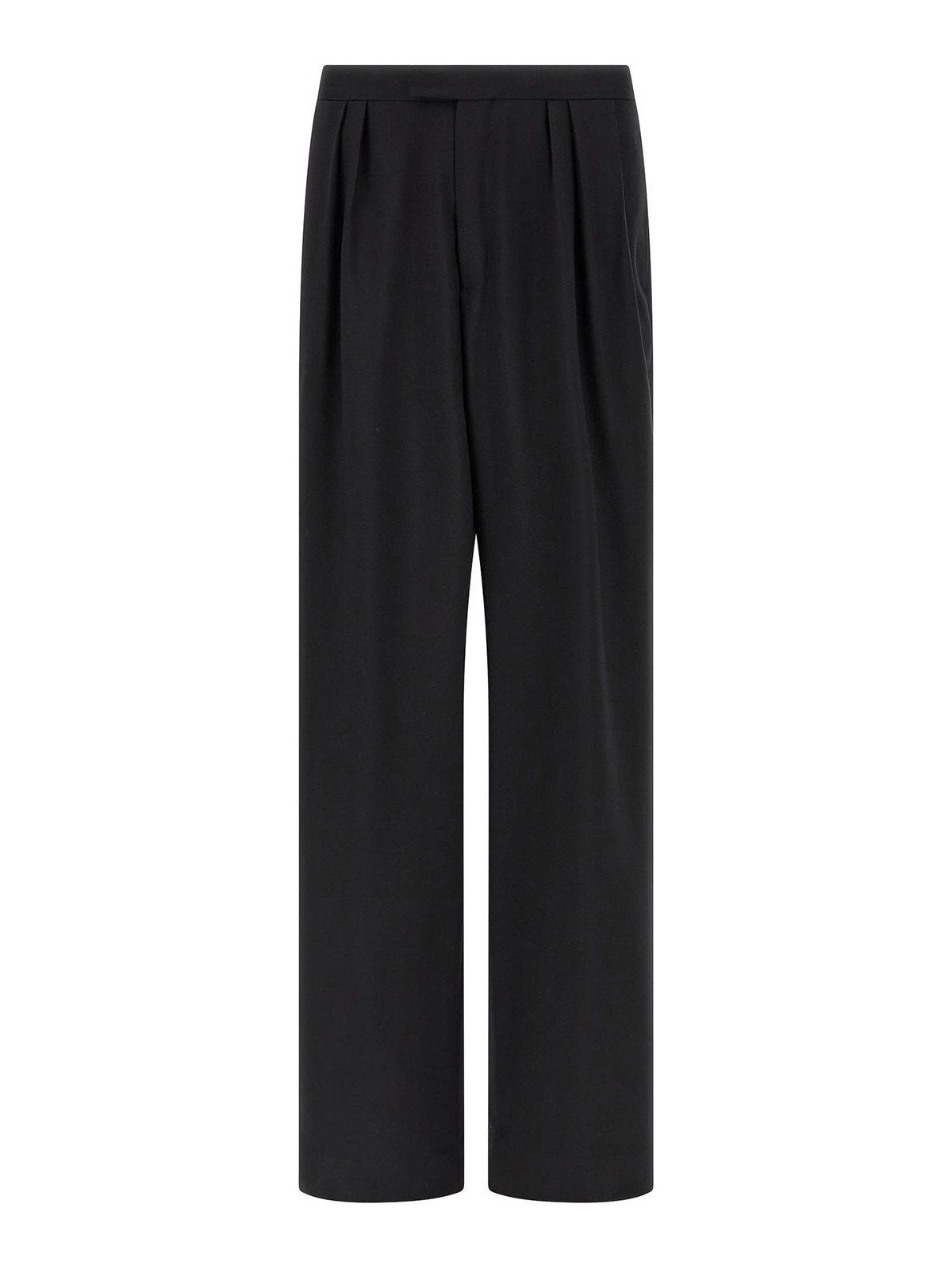 Preaches'のウールとモヘアの混紡パンツ、プリーツ、ワイドでストレートなレッグ、ジッパー、フック、フロントボタン留め、ポケット。
