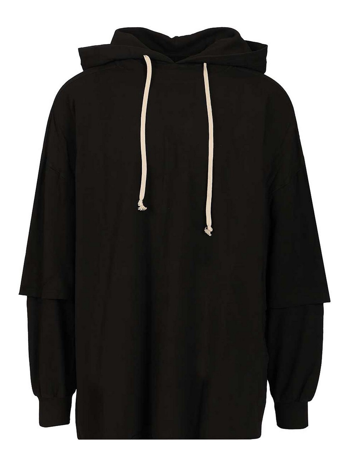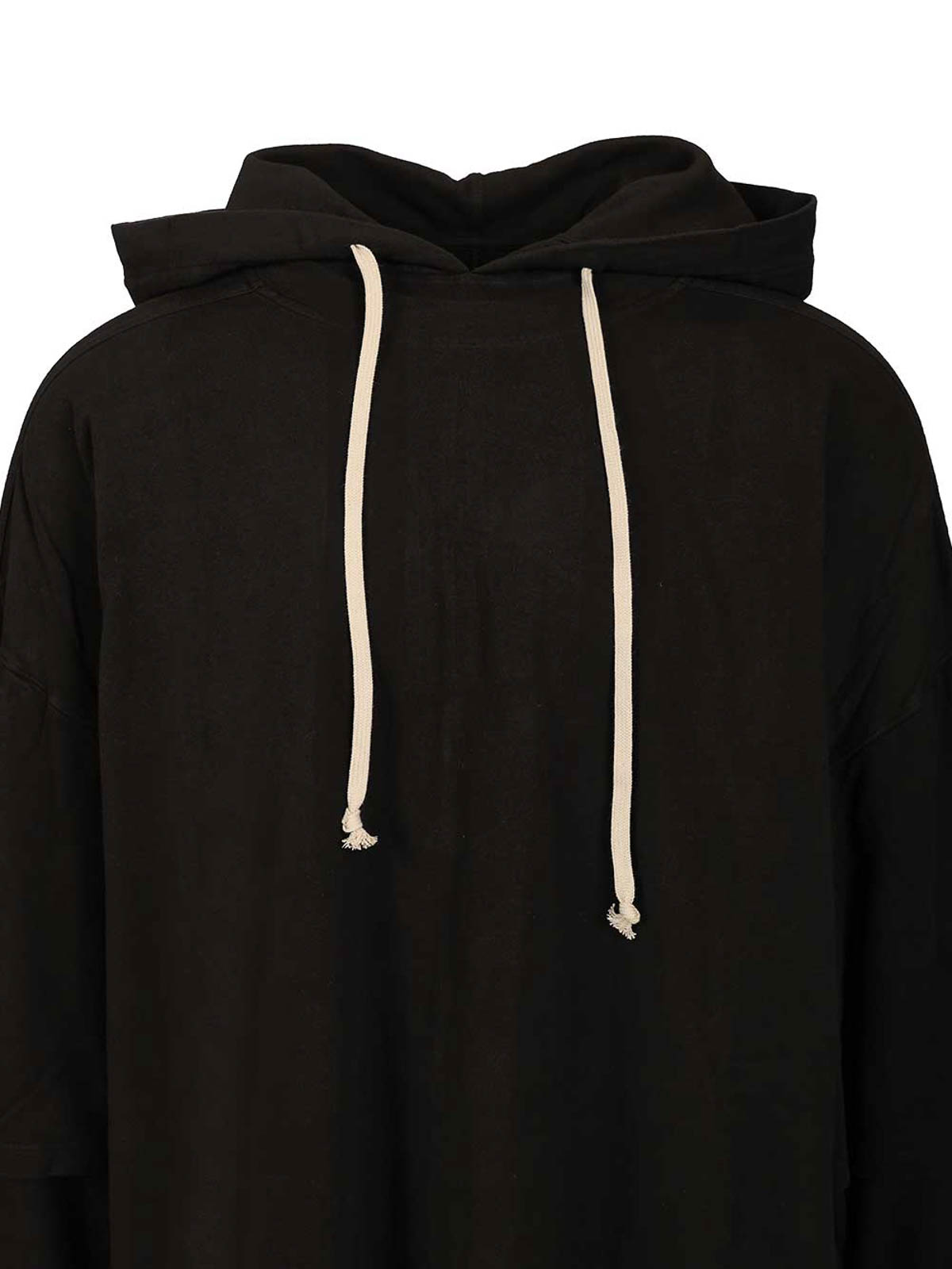 ソリッドブラックカラーオーバーサイズチュニック丈シルエットゆったりしたフード付きロングオフホワイトドローストリングドロップショルダーシームレイヤードショートオーバーロングスリーブリラックスジャージーニットドレープ