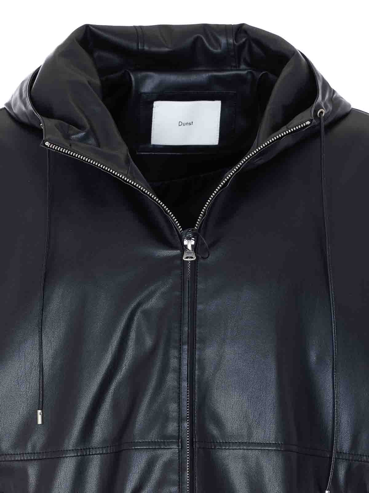 Dunst ブラックビーガンジャケット、ロングスリーブ、ポケット、クーリス付きフード、サイドポケット、ジッパー