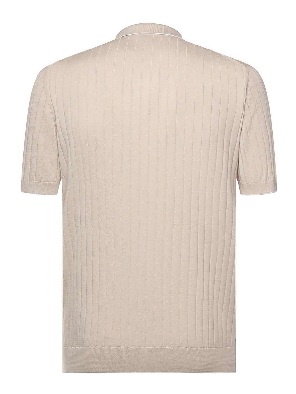 純綿製、ファスナー開閉、半袖、ストレートヘム、レギュラーフィット、イタリア製、表示サイズはM、色:トープ、ホワイト