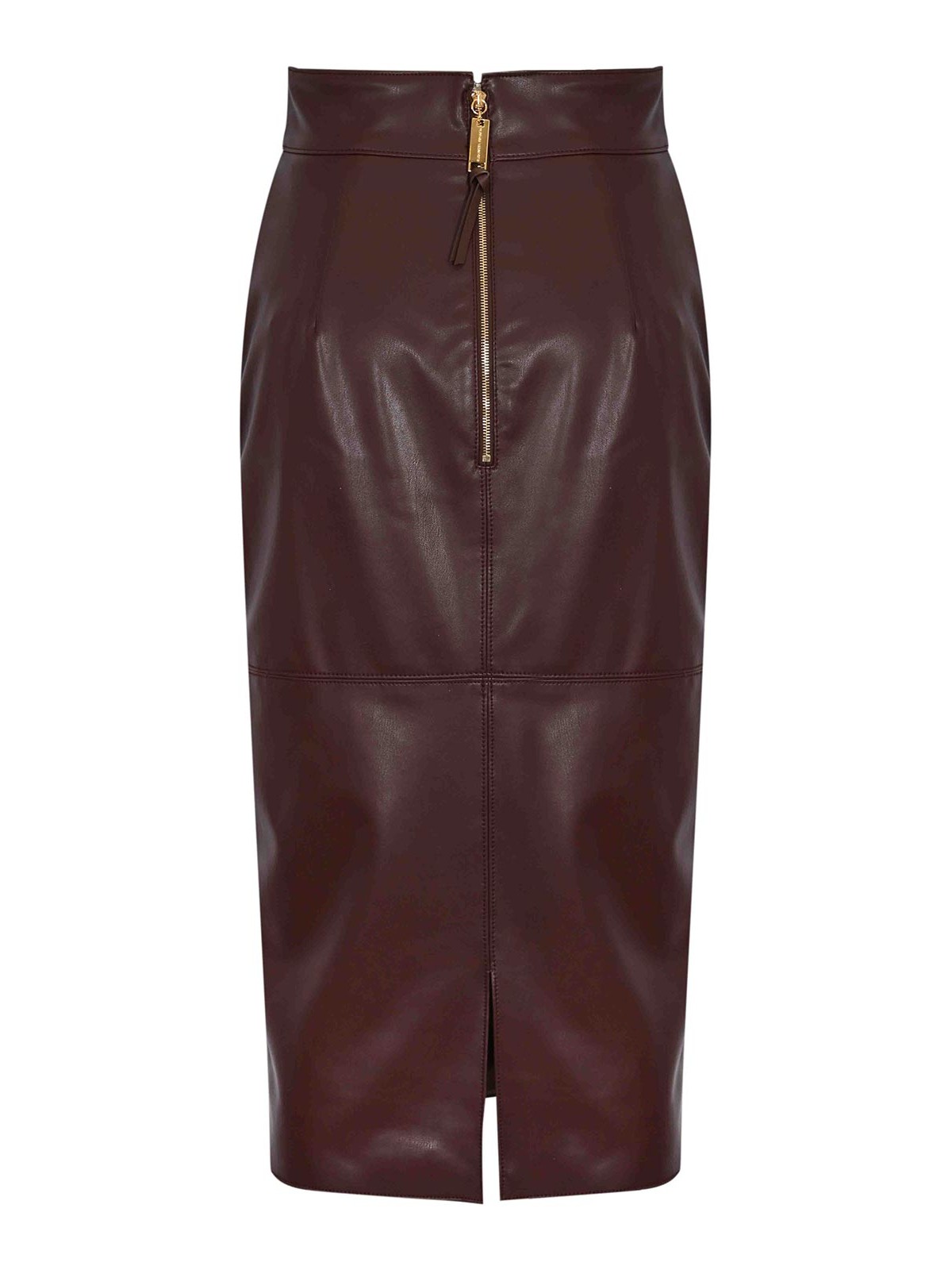 エンボス加工ロゴ入りレザーエフェクトスカート
