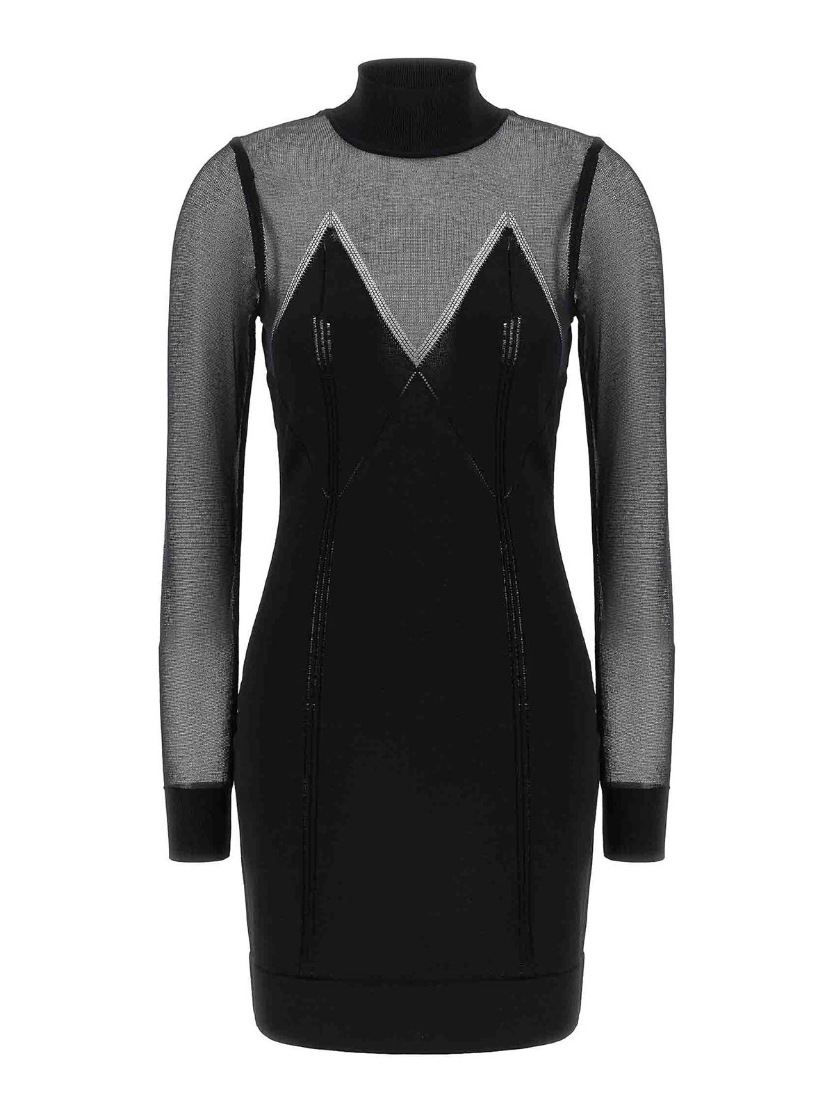 透明性に優れたビスコースとストレッチコットン混紡のミニドレス。ハイネック、ロングカフスリーブ、裾にバンドが付いています。