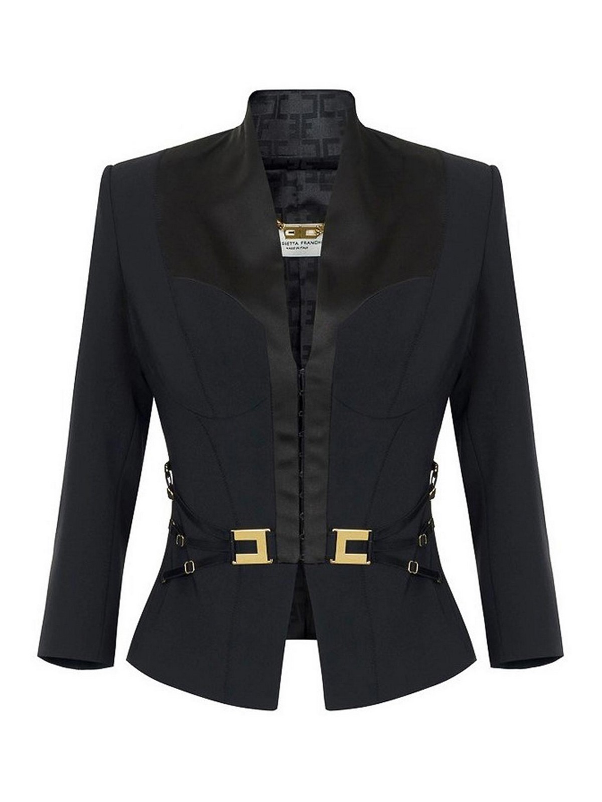 ブラックダブル、ストレッチクレープ、ジャケットパッド入りショルダー、モノグラムフック