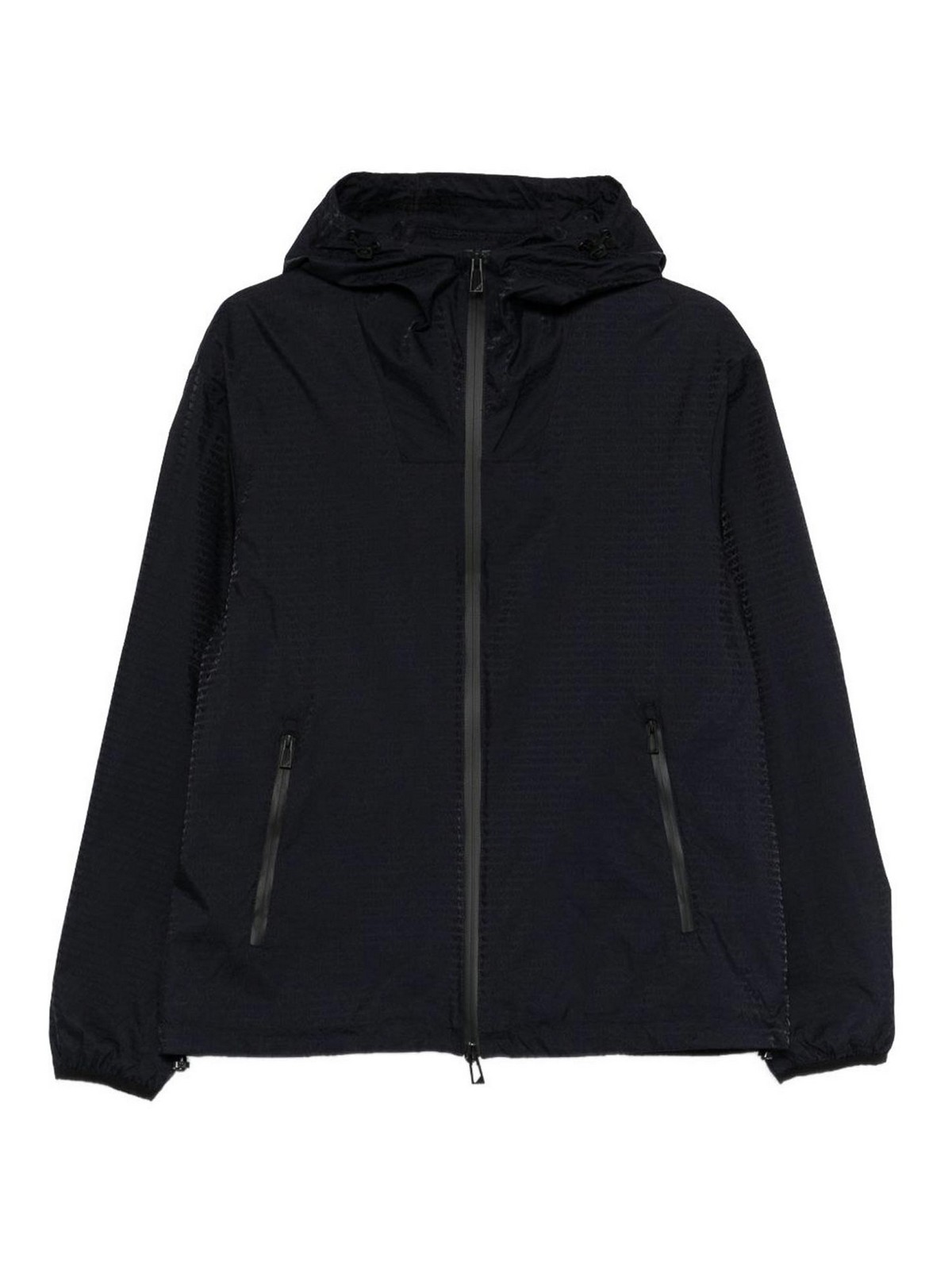 ブルーテクスチャード仕上げのファスナー付きサイドファスナー付きポケットフード