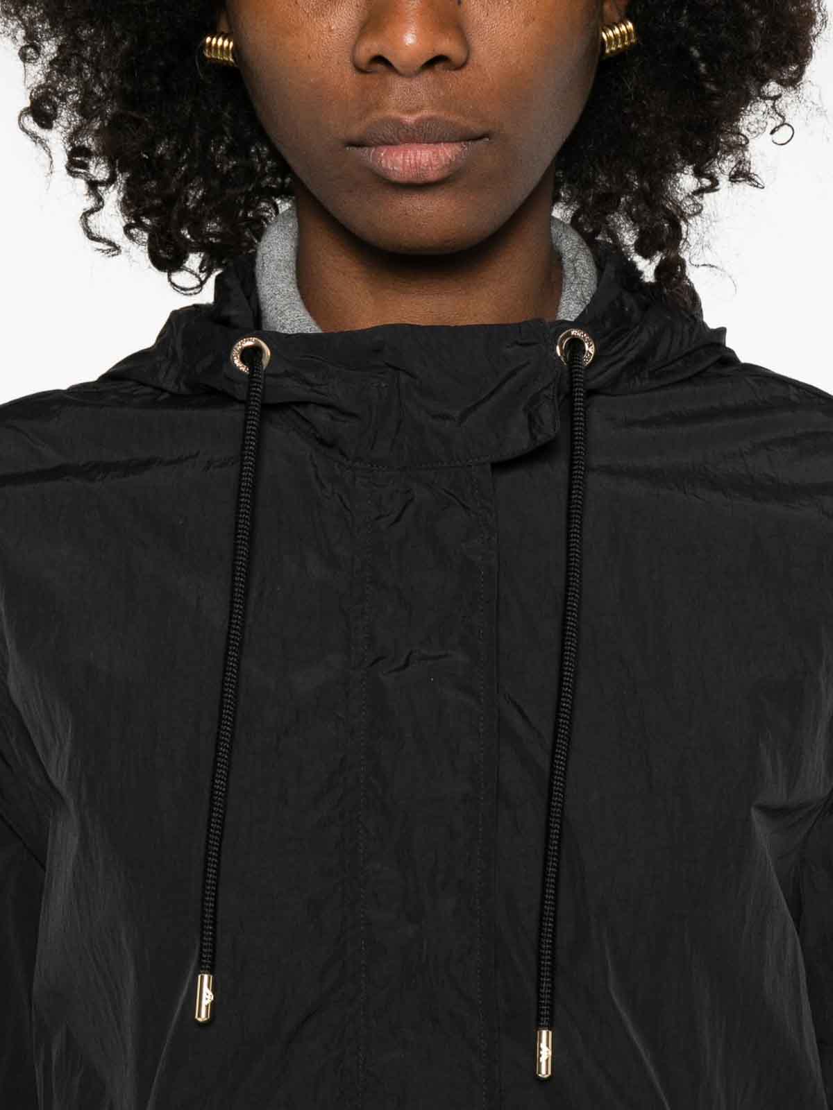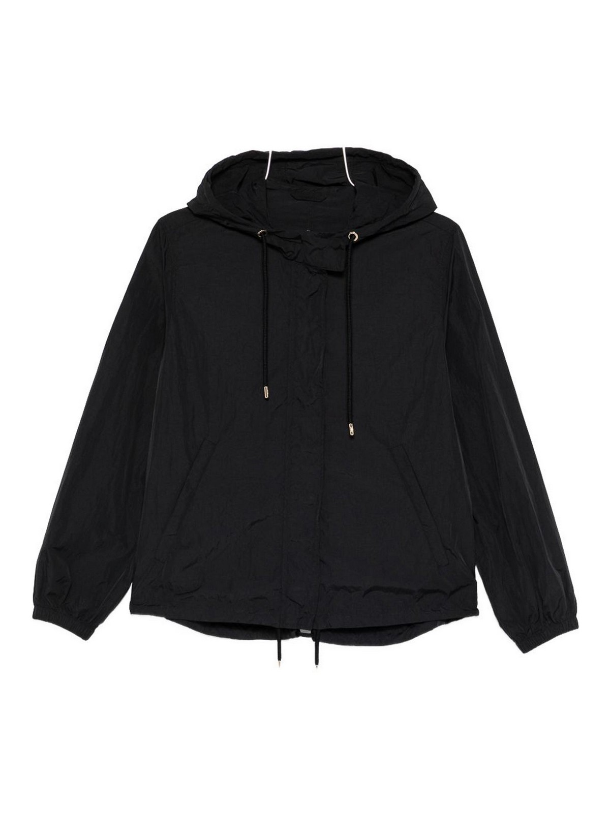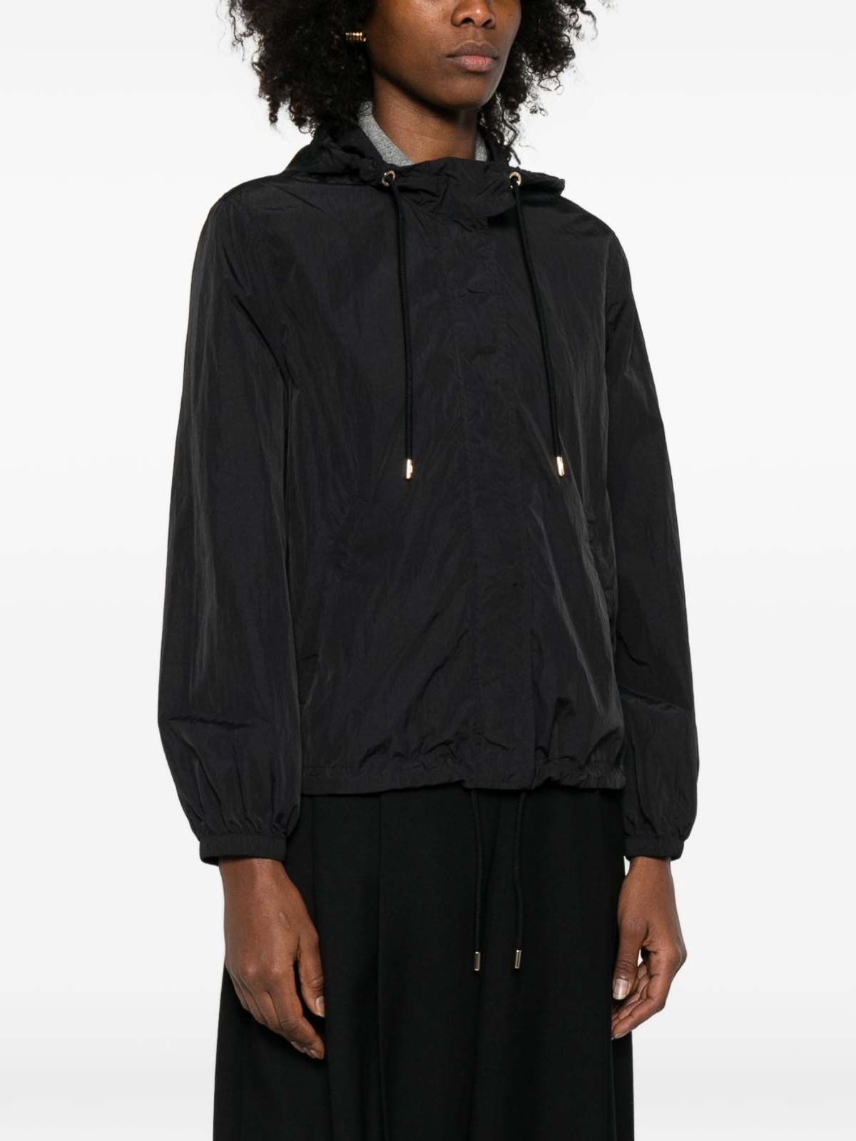 ブラックドローストリングフードドローストリングヘムロングスリーブウェルトポケット