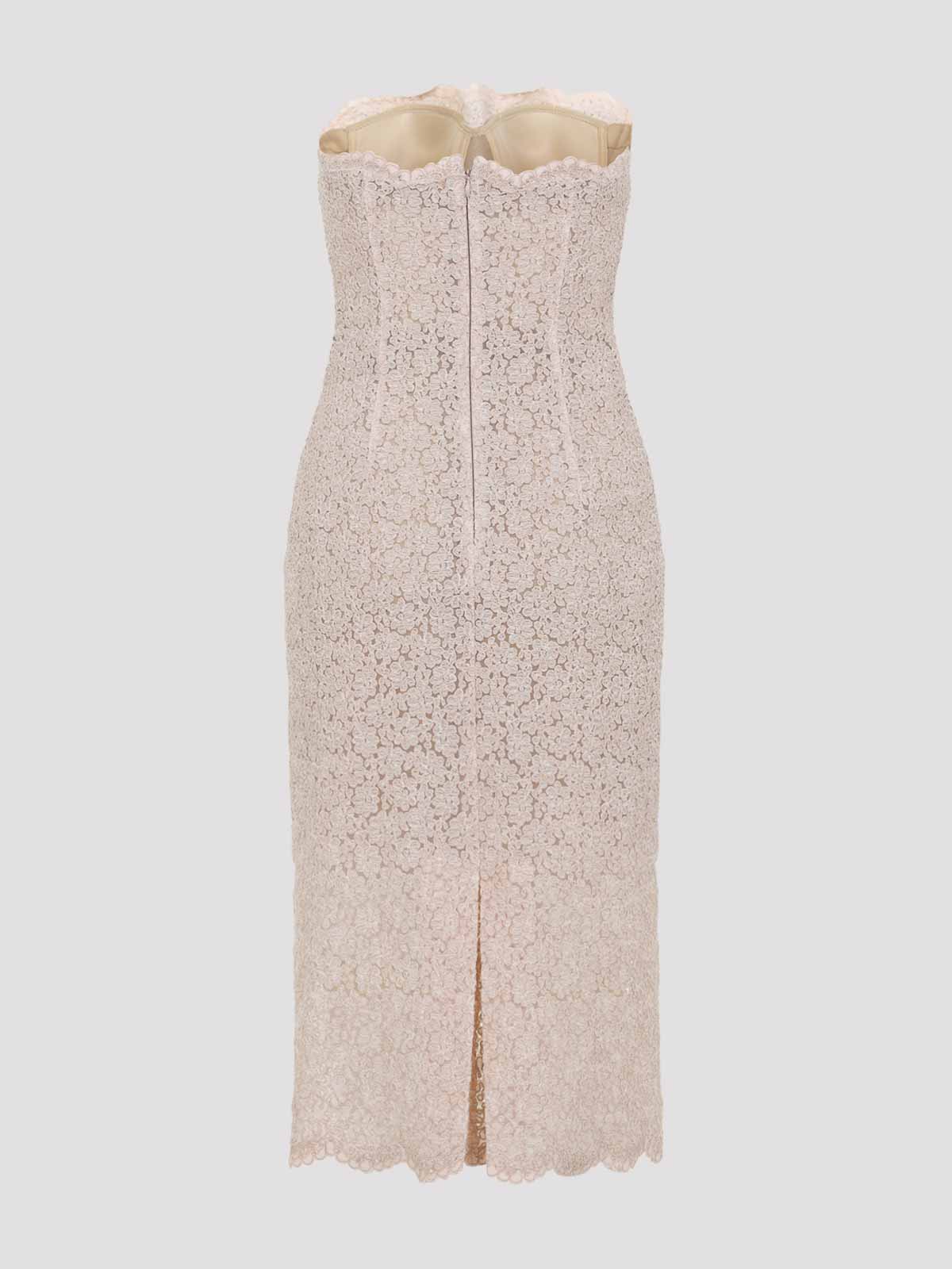 Ermanno scervino レースピンクコットンミディドレス。ピンクの花柄レースで作られたミディドレス。ストレートネックライン、あらかじめ成形されたブラカップ、背面の隠しファスナー、スカラップヘム、裏地が特徴です。