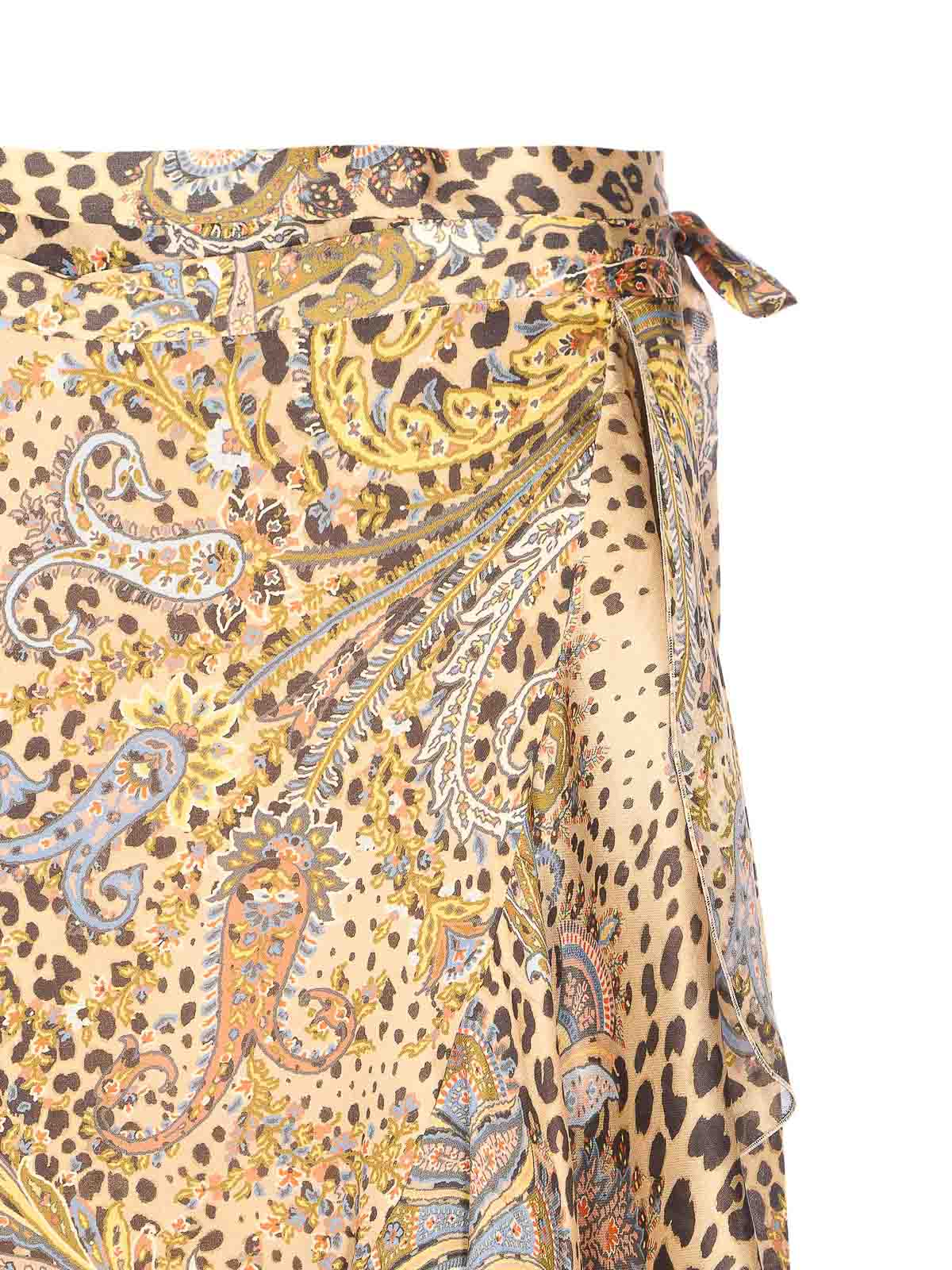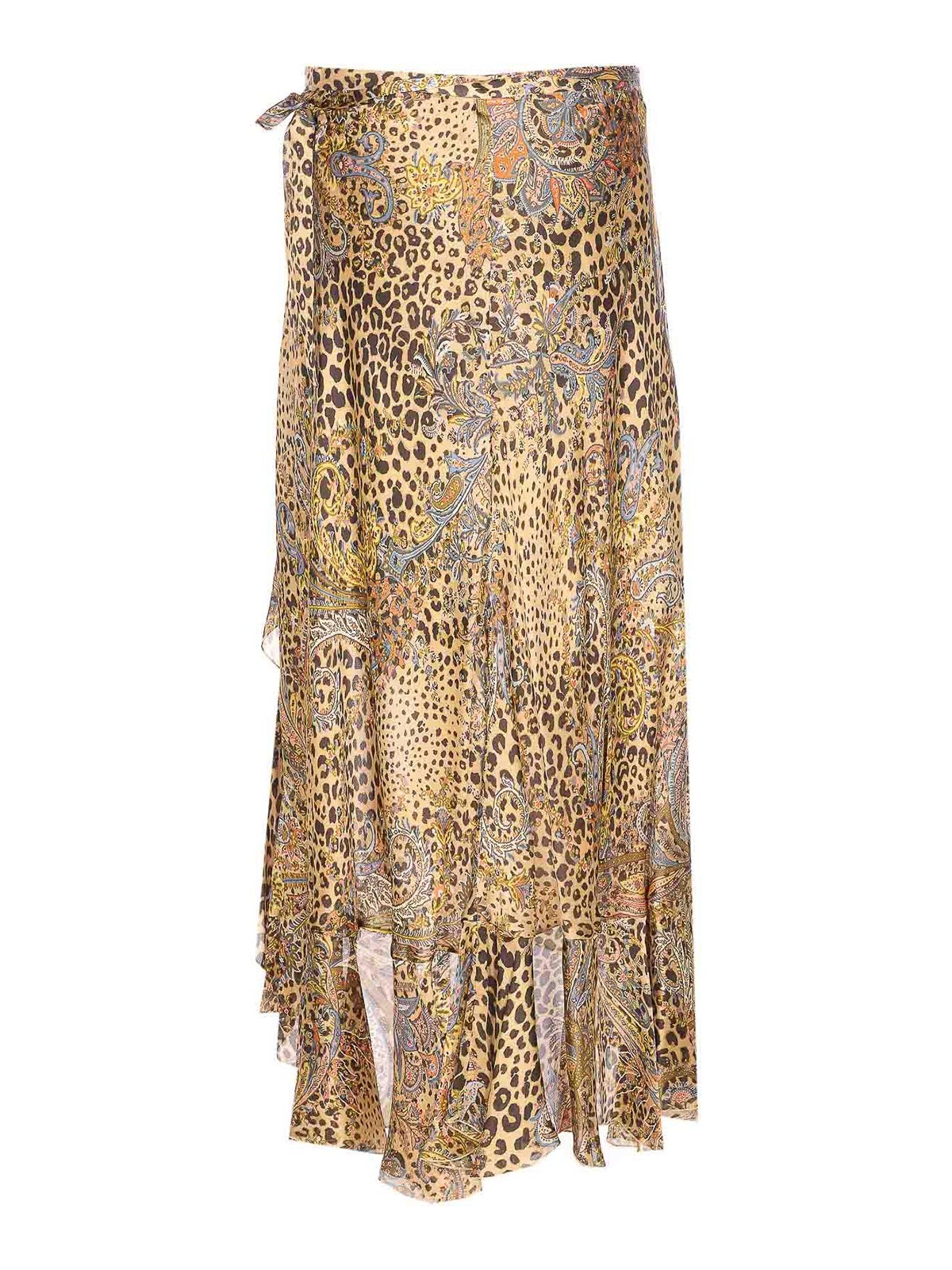 Etro マルチカラーペイズリースカート、ラップクロージャー、フリル、プリント、フレアモデル