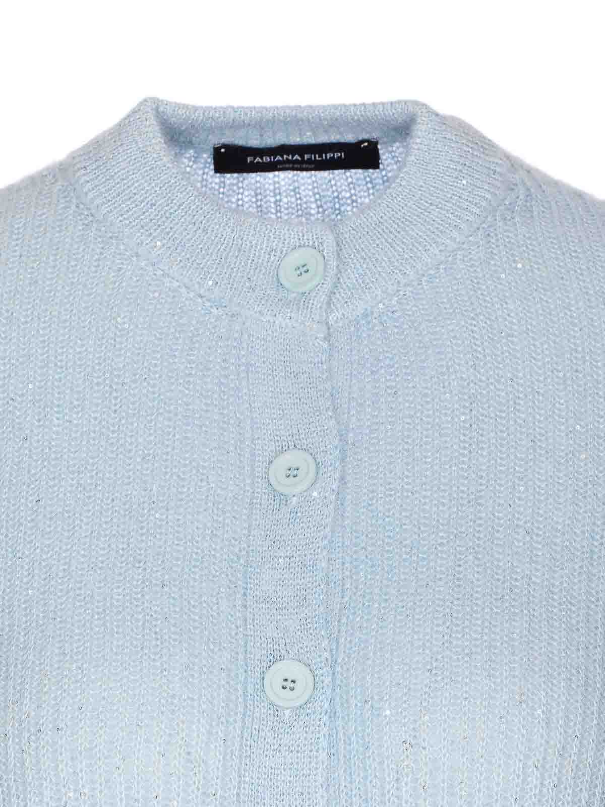 ファビアナフィリッピライトブルーセーター、クルーネック、ロングスリーブ、オールオーバースパンコールディテール