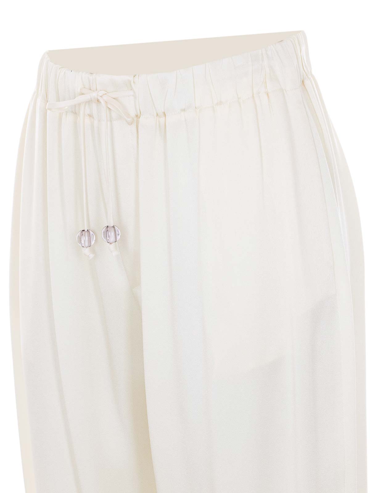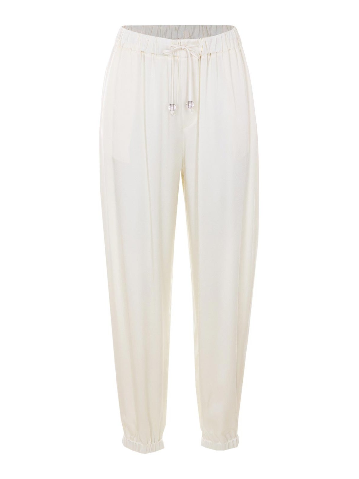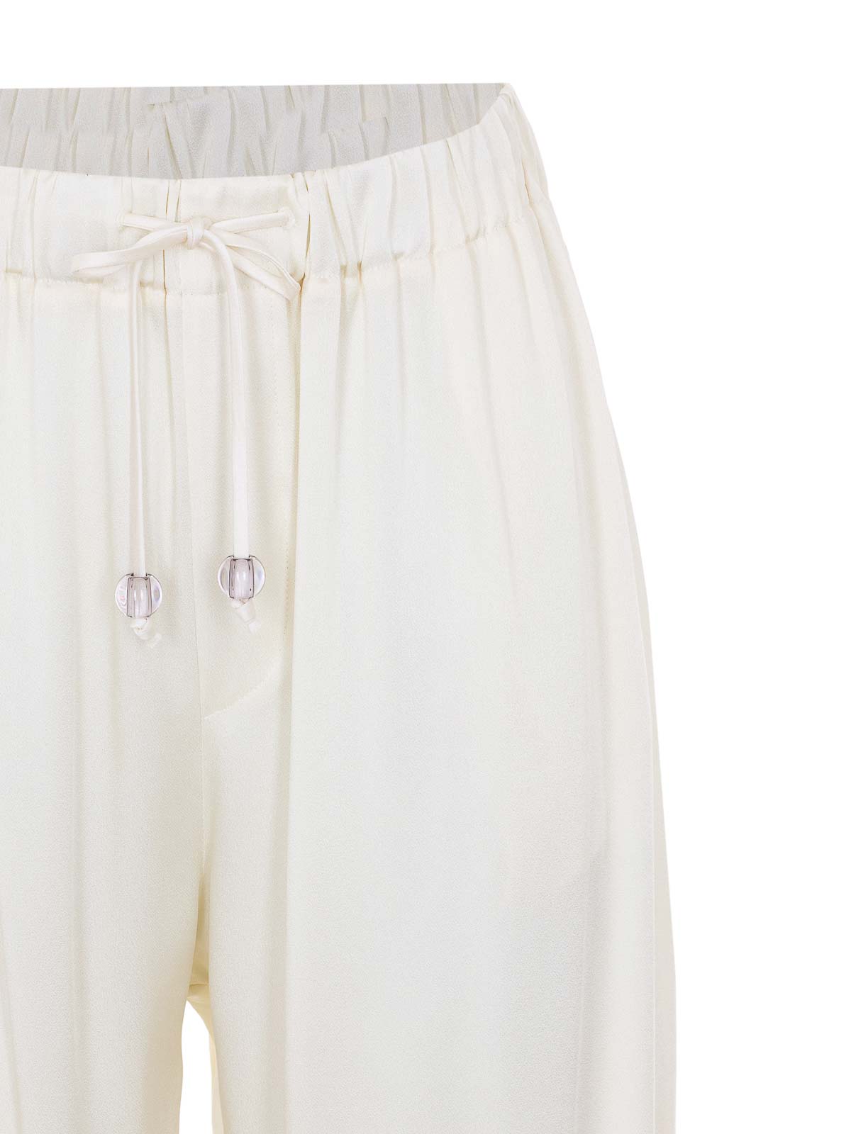 Fabiana Filippi ホワイトパンツ、ウエストにゴム入り、ウエストにクーリスクロージャー、サイドポケット、ボトムにカフス、サテンエフェクト、フレアモデル