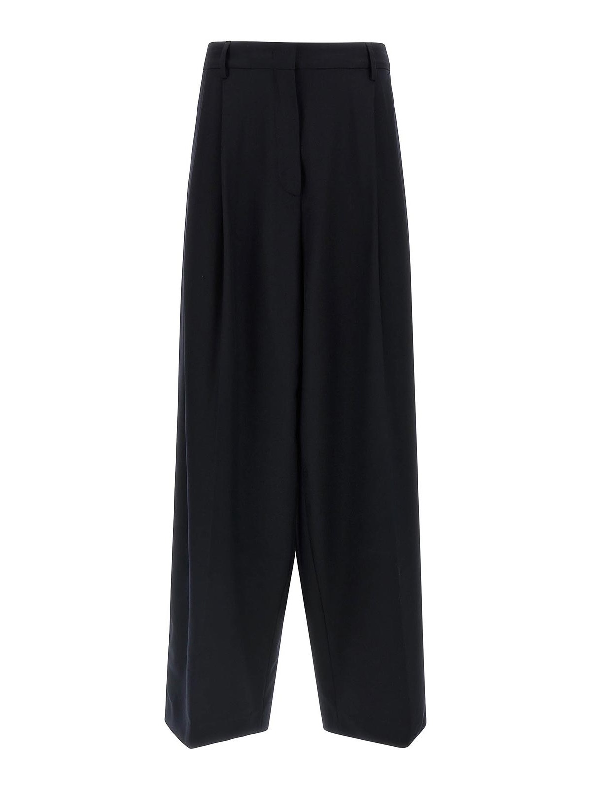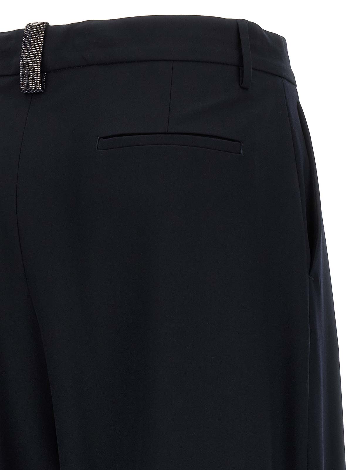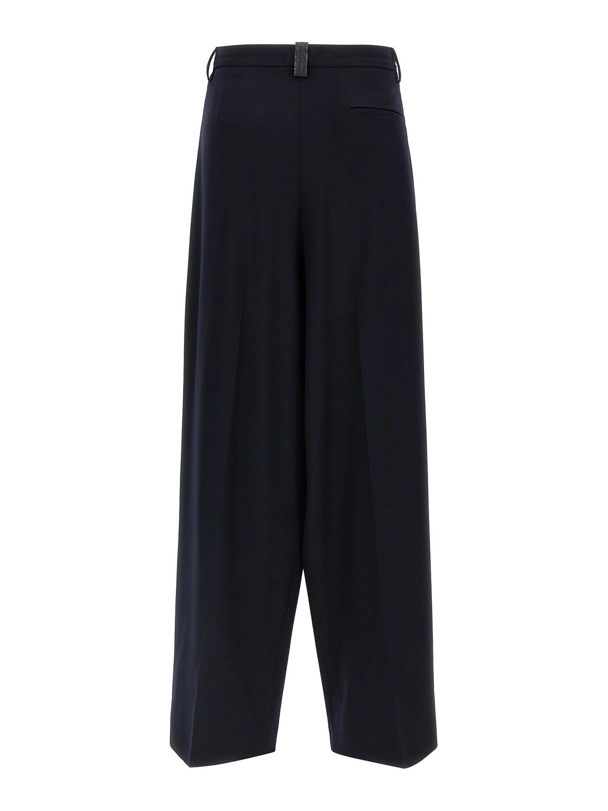 ビスコースフルイドエフェクトパンツ、ダブルフロントピンサー付きフォーマルモデル、ワイドレッグ、フロントストレッチプリーツ、ウエストにジュエルディテールを施したベルトループ、フロントジッパーとフッククロージャー、ポケット。
