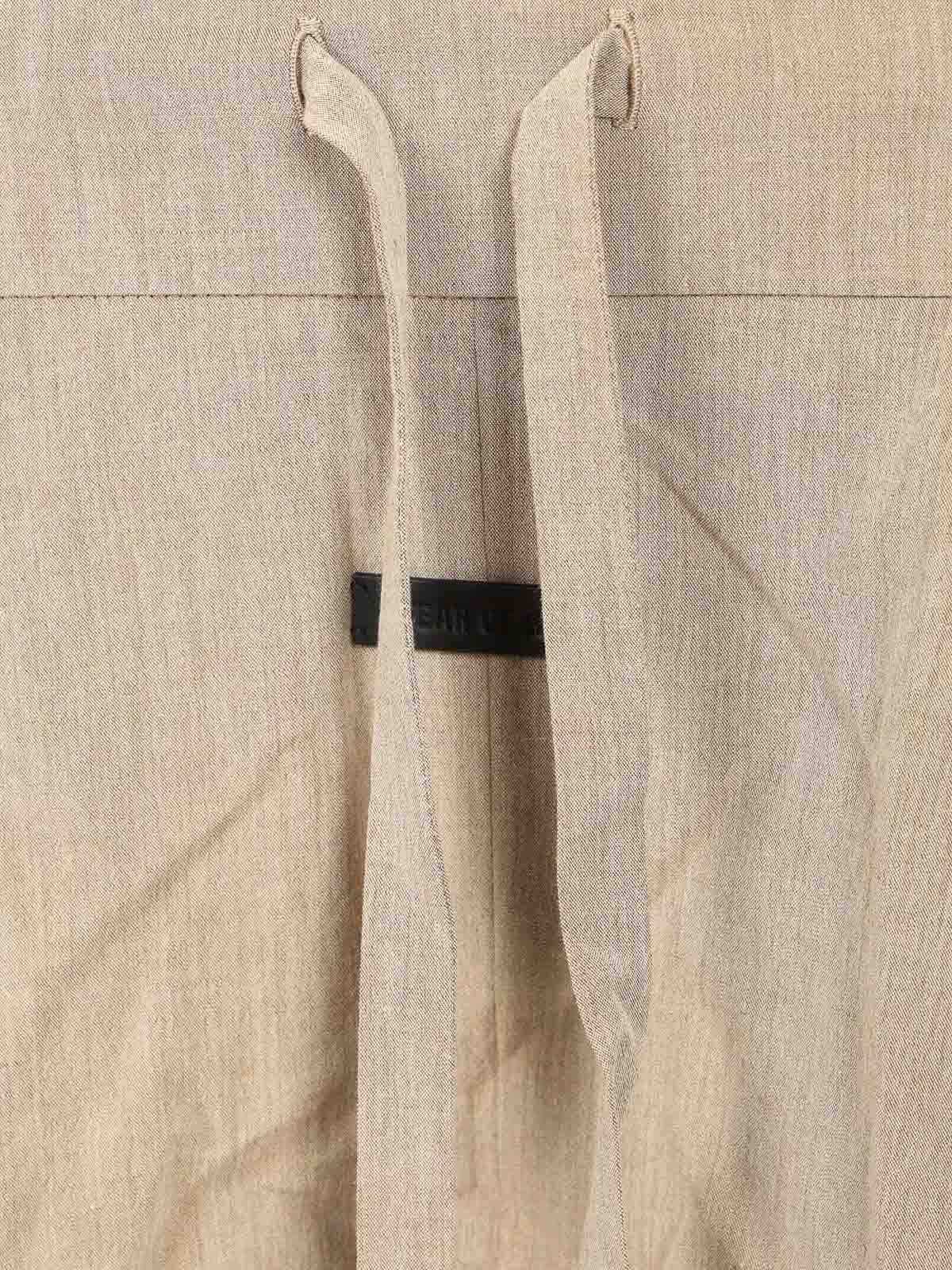 ウールとコットンのプリーツパンツ。ドローストリング、伸縮性のあるウエスト、ウェルトポケット、フロントにフィアオブゴッドのラベルが付いています。