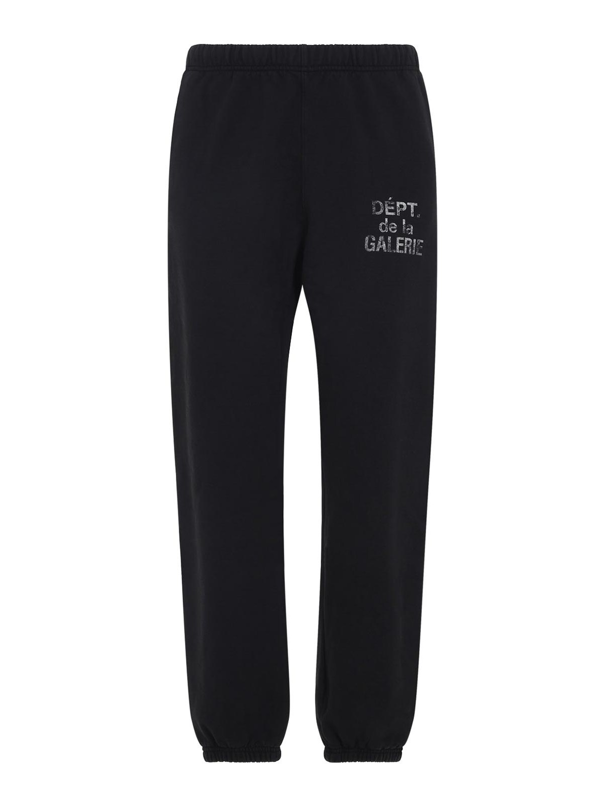 ギャラリーデパートウォッシュドブラックコットンスウェットパンツ。ピュアブラックコットンのスウェットパンツ、伸縮性のあるウエストバンド、サイドポケット、サイドコントラストの効いた白いレタリングロゴ、伸縮性のあるストレートヘム。