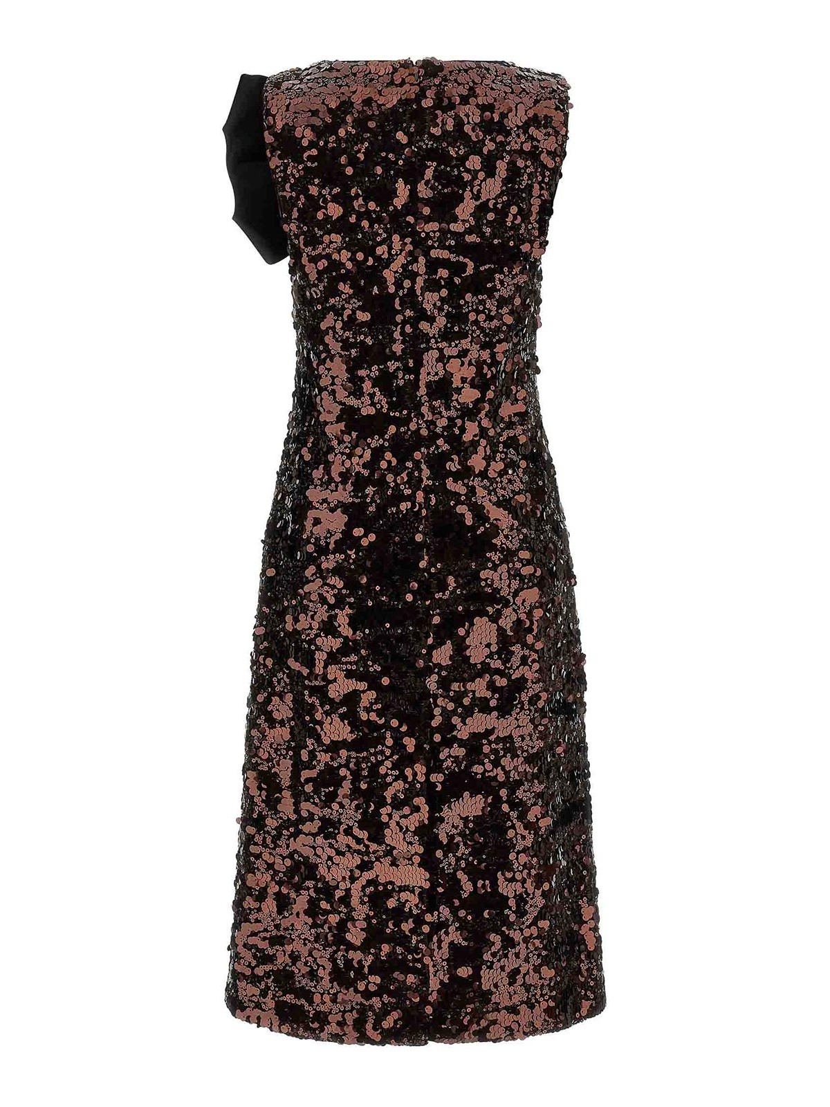 ベルベットスパンコールストレートミディドレス。全体にスパンコールで覆い、トーン・オン・トーンのベルベットのディテールをあしらいました。フロントリボン、クルーネック、ノースリーブ、ジッパー、バックスプリット、裏地付き。