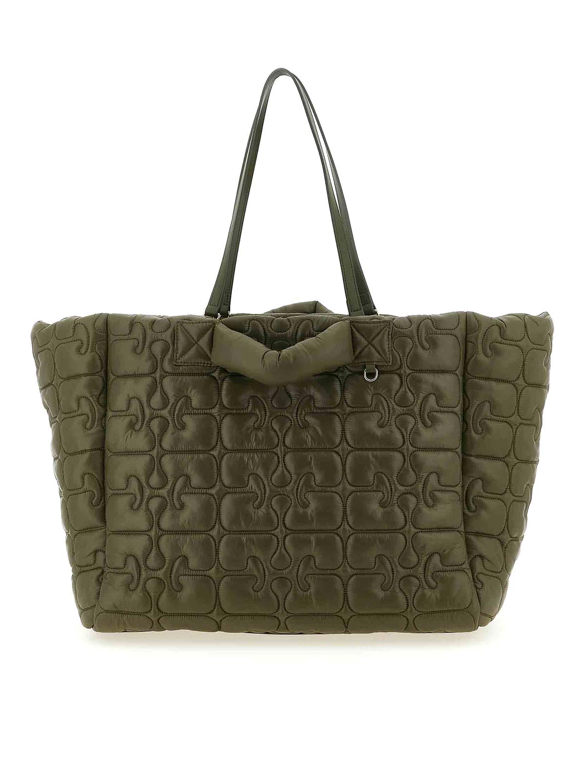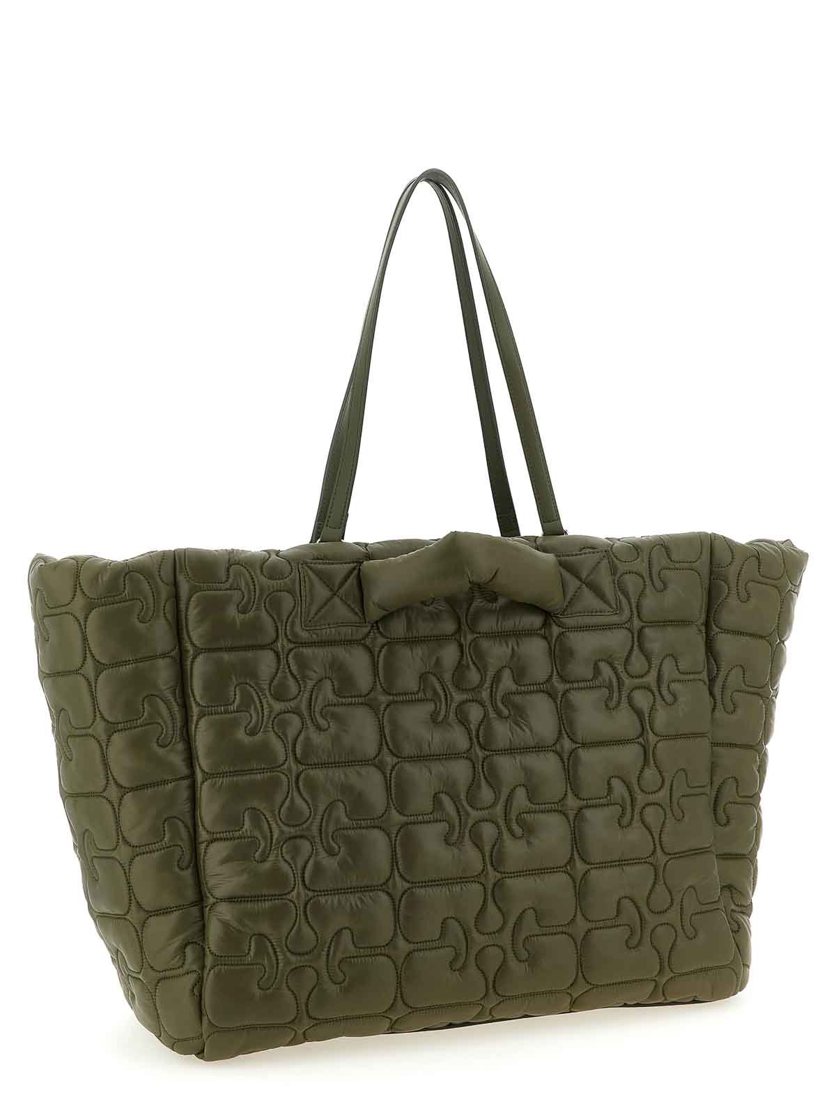 モノグラムキルトのパッド入りテクニカルファブリックを使用したキルト加工のRe-tech XXLトートバッグで、ダブルショート固定ハンドルとショルダーハンドルが付いています。