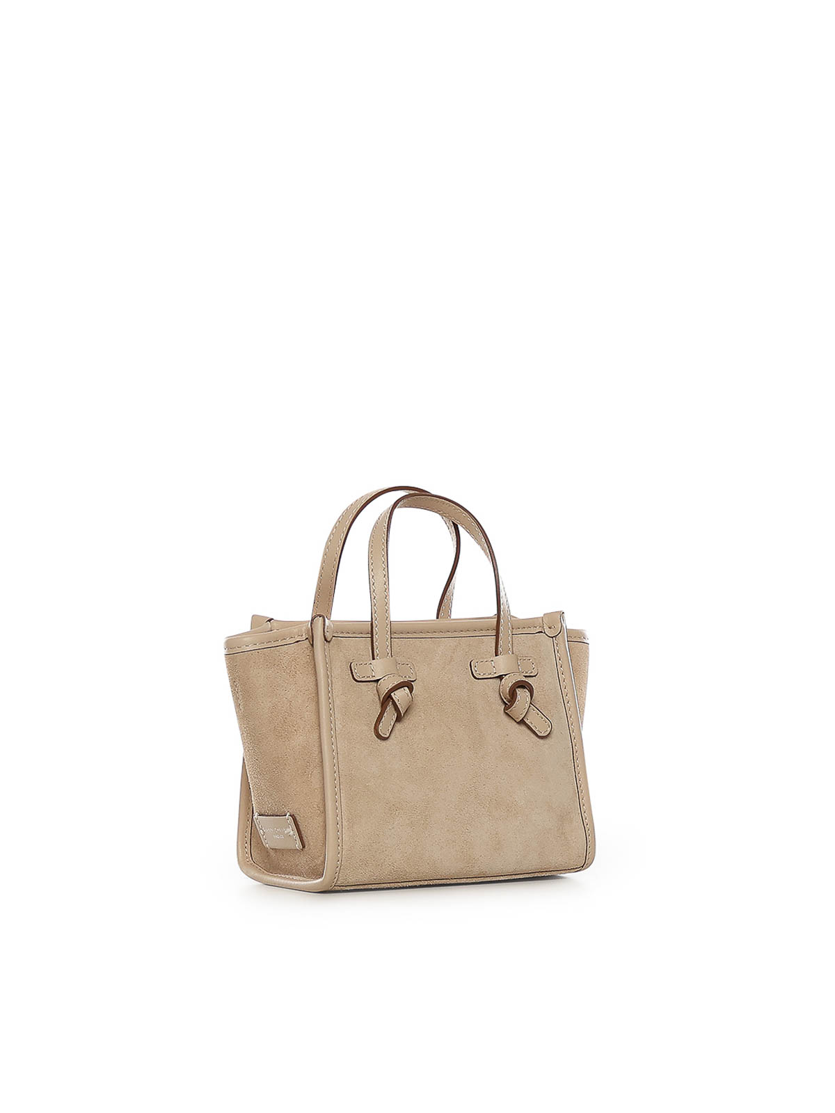 スエード製、ジップクロージャー、レザートップハンドル、イタリア製、寸法:19 x 15 x 10 cm、デザイナーカラー:ヌード